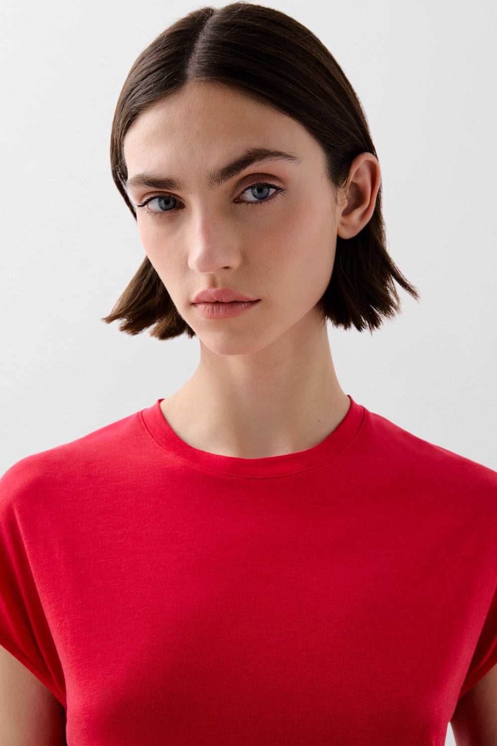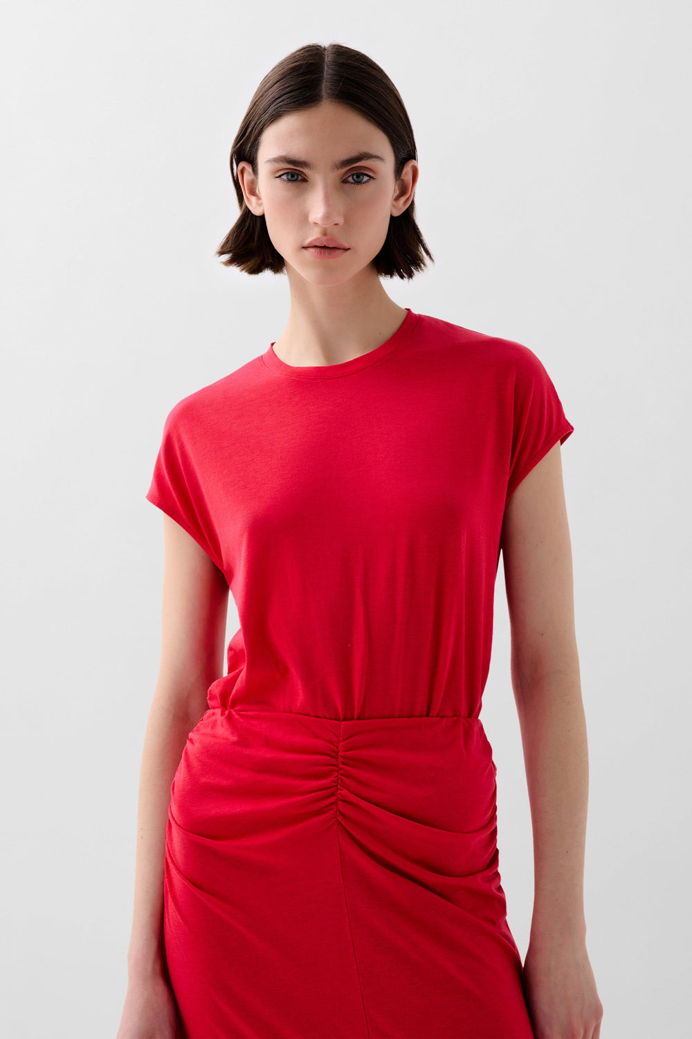 Camiseta con frunces laterales. Confeccionada en mezcla de algodón. Corte Regular fit. Cuello redondo. Manga en corta