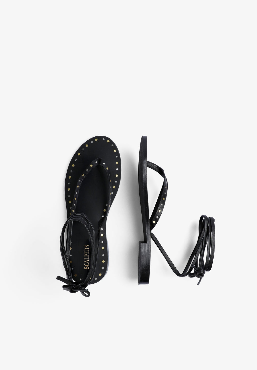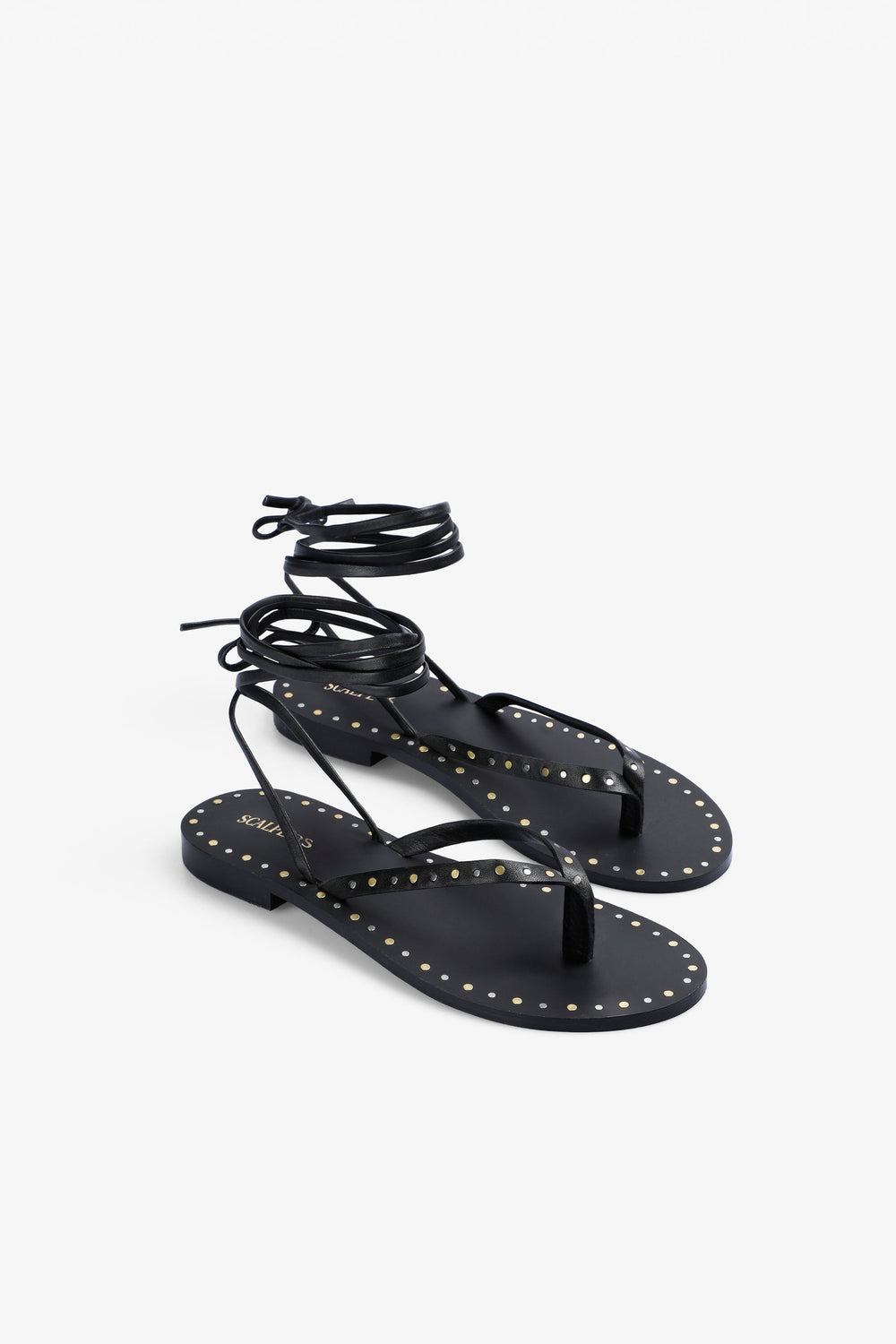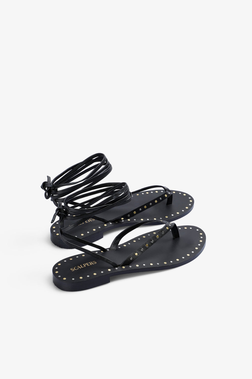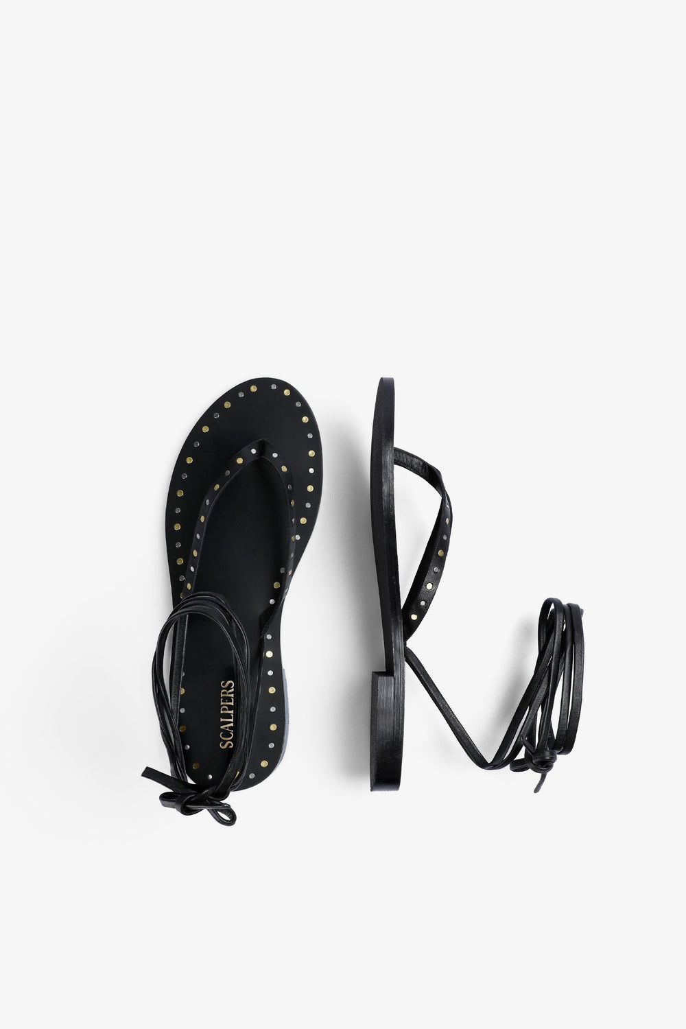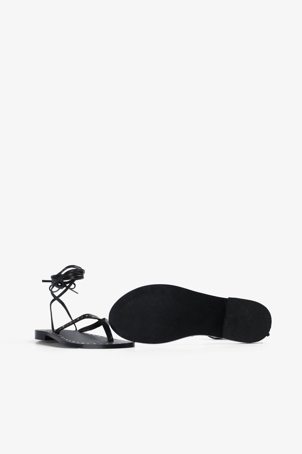 Sandalia con tacón confeccionada en 100% piel. Cierre con lazada. Detalles metálicos en bordes.