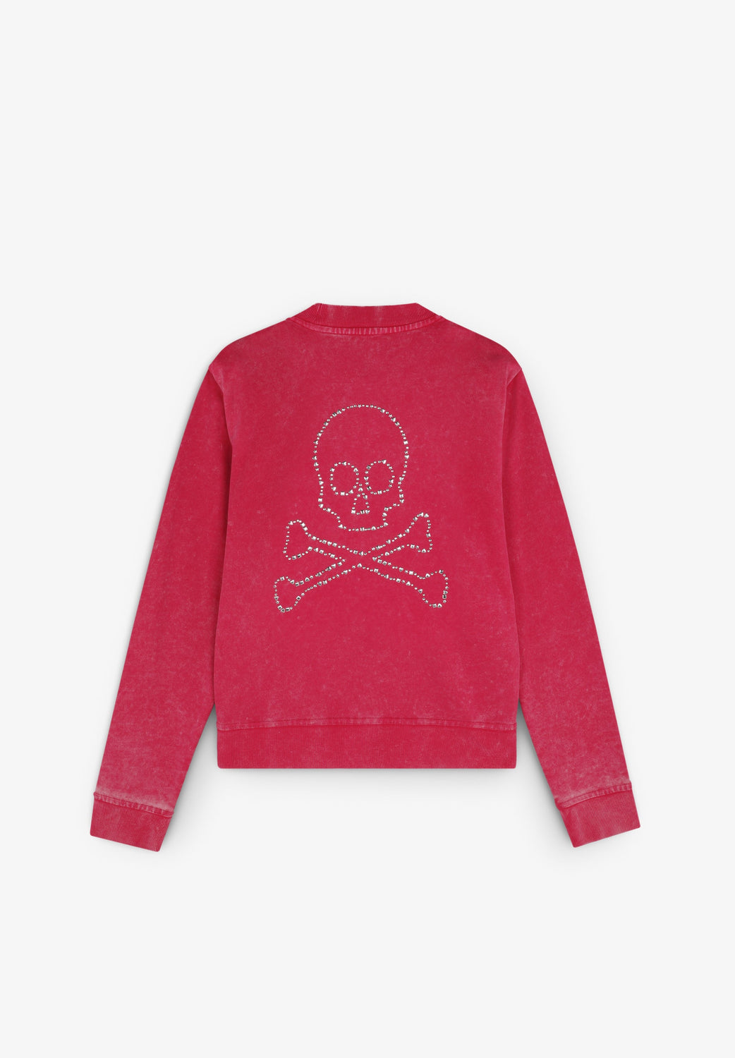 Sudadera confeccionada en 100% Algodón Orgánico BCI. Manga larga. Cuello redondo. Rib en puños y cuello. Detalle de calavera con strass en espalda.