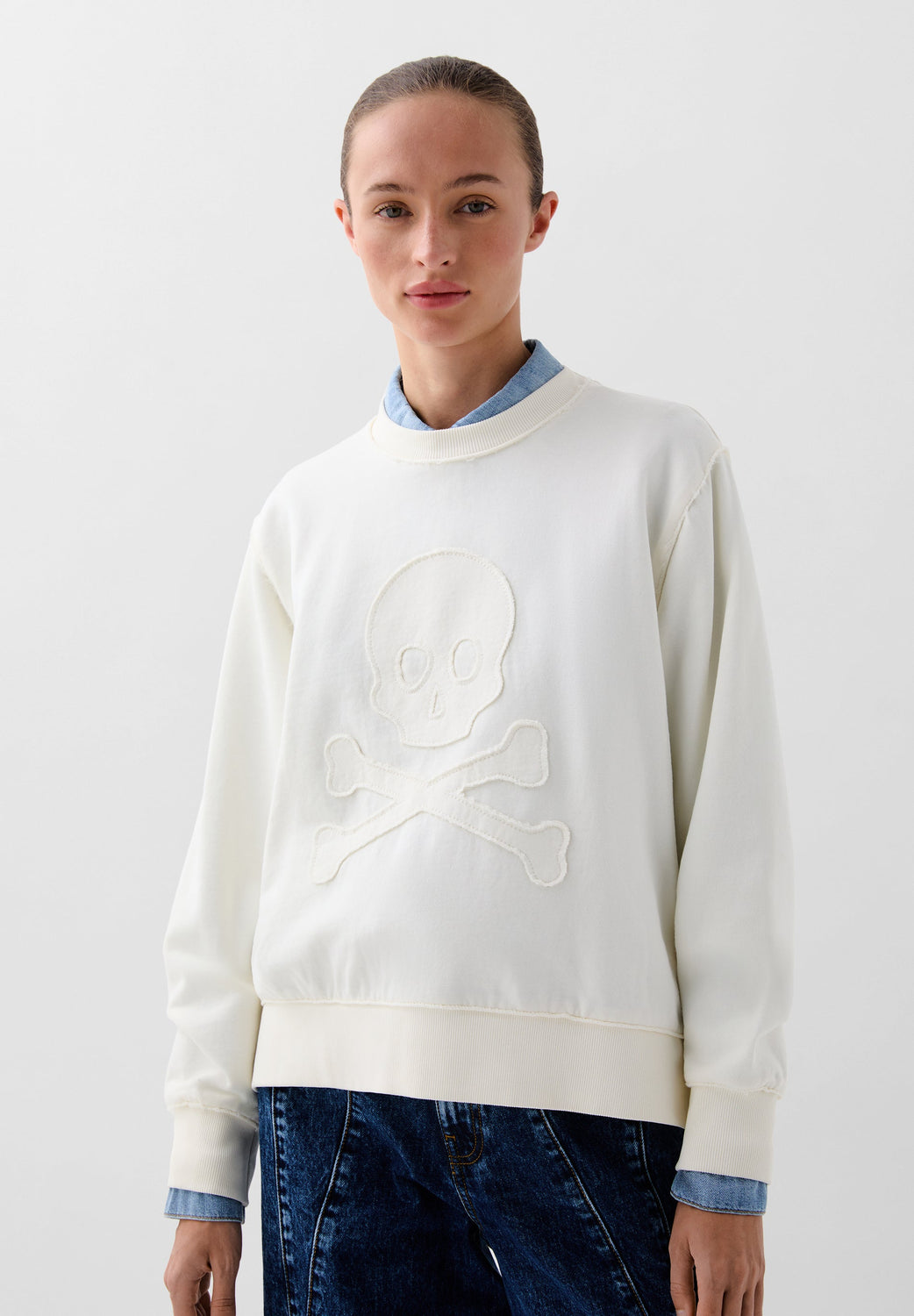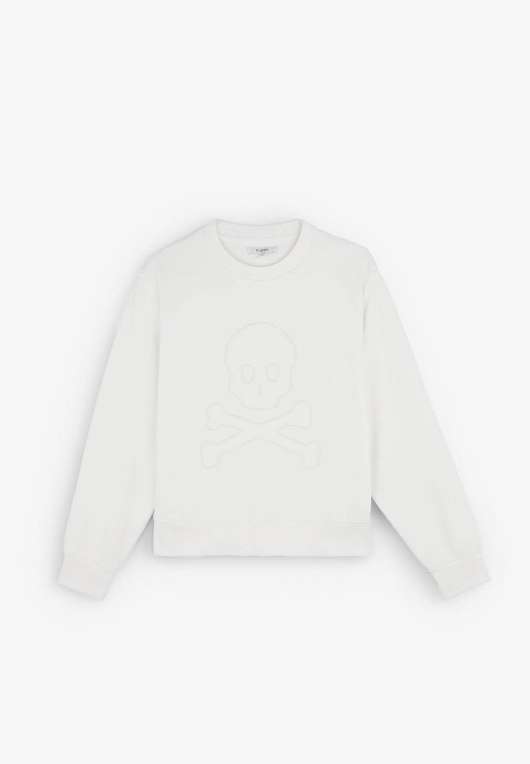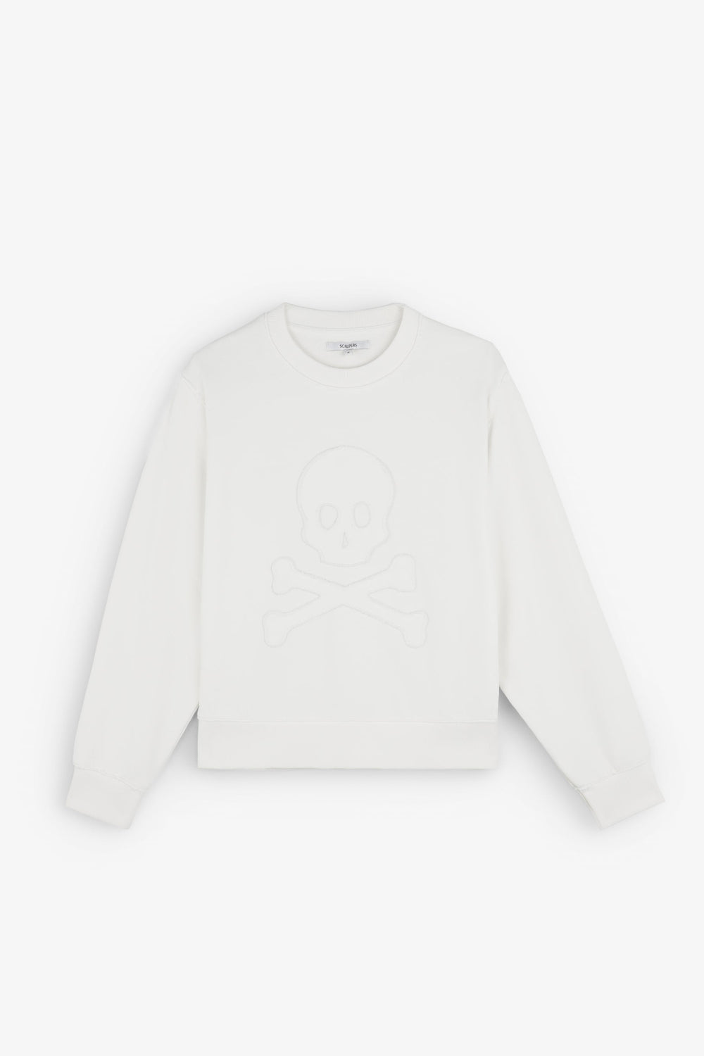 Sudadera confeccionada en algodón ligeramente elástico. Regular fit, cuello redondo y manga largo con puños acabados en rib. Detalle de calavera frontal en relieve.