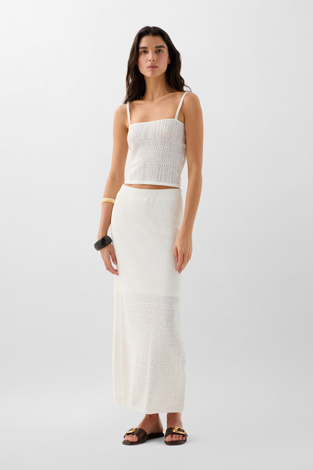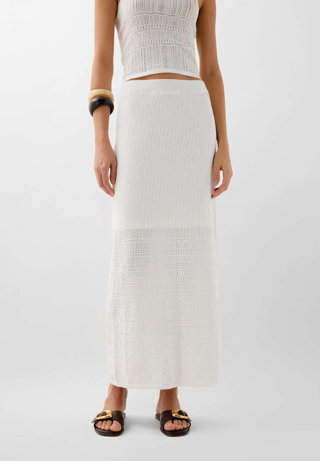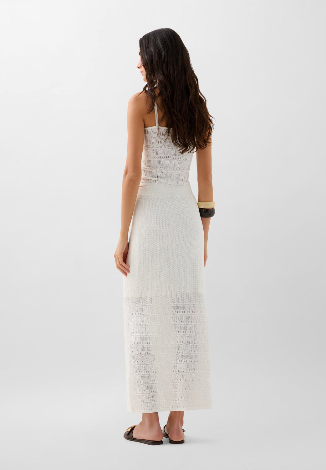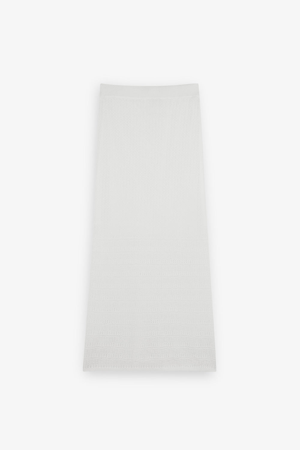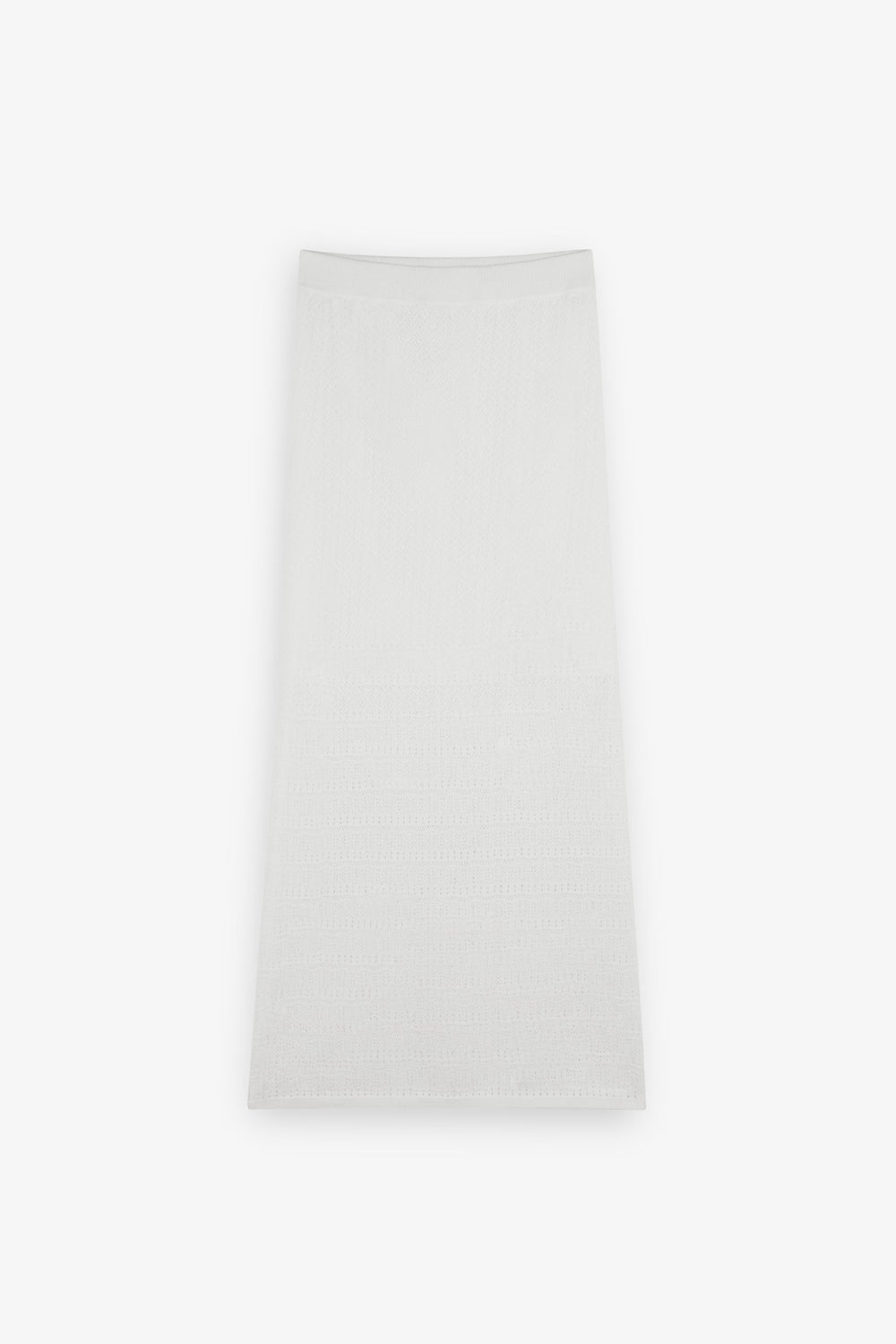 Falda de punto Pointelle. Forro interior. Cinturilla elástica.