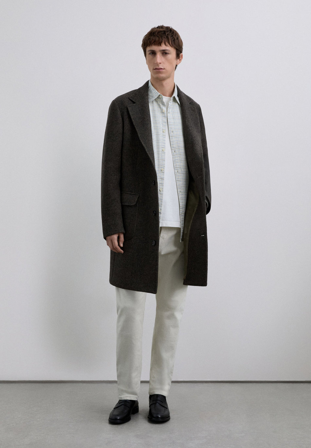 Camisa confeccionada en 100% algodón BCI. Estampado de cuadros. Manga larga con botones en puño. Abotonadura frontal.
