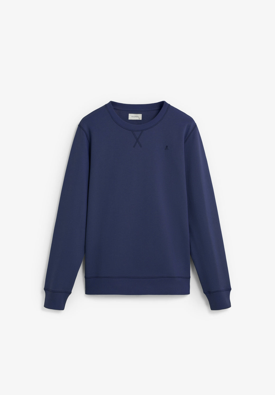 Sudadera confeccionada en 100% algodón BCI. Manga larga. Cuello redondo. Acabados en rib. Detalle de logotipo bordado en pecho.