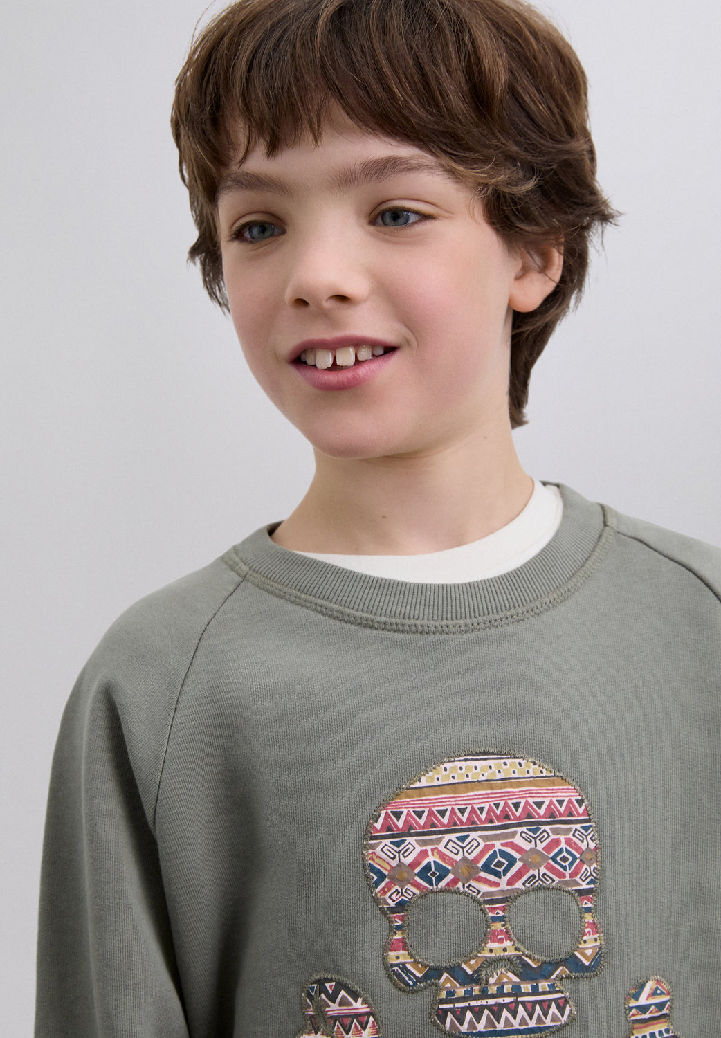 Sudadera confeccionada en 100% algodón BCI. Regular fit. Cuello redondo. Manga larga. Print frontal con calavera. Acabados en rib.