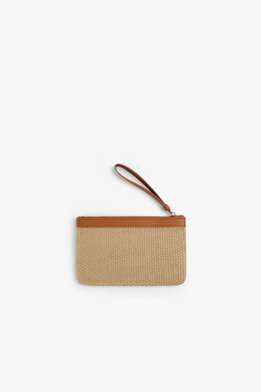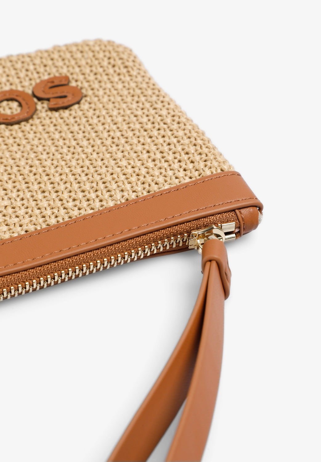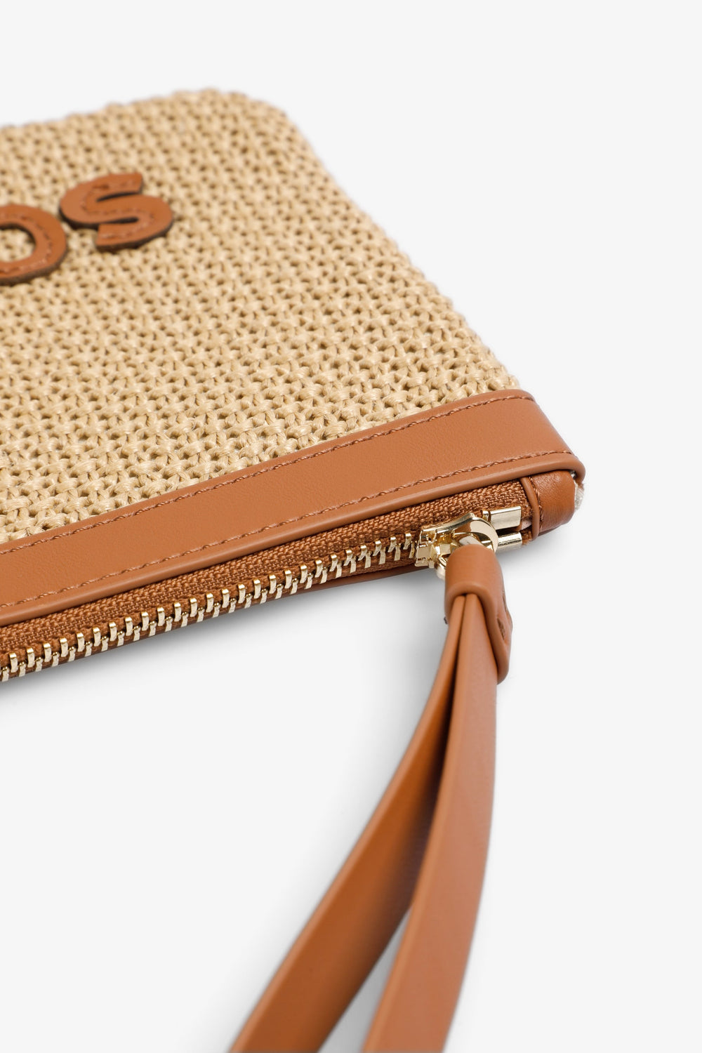 Monedero confeccionado en rafia con logo a contraste en parche. Cierre con cremallera.