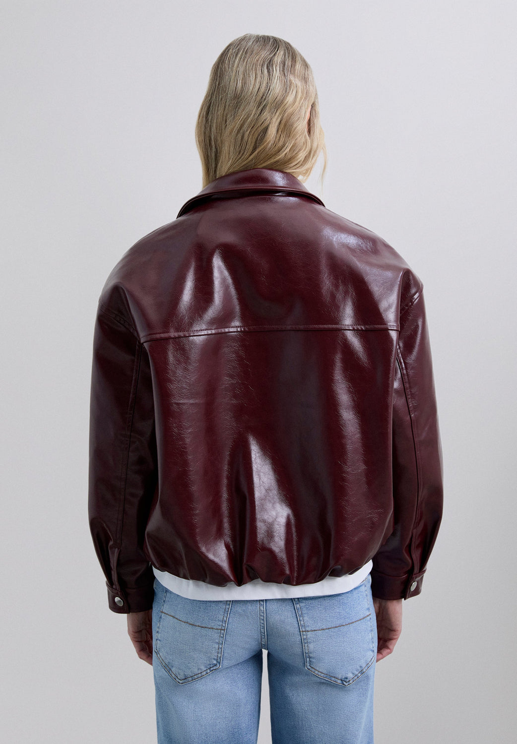 Chaqueta Bomber Bolsillos de Scalpers para mujer. Pertenece a la categoría Chaquetas / Chaquetas. Temporada AW26. Color: BURGUNDY. Chaqueta bomber confeccionada en piel sintética. Cierre frontal con botones. Bolsillos en los costados y en la parte frontal. Puños con cierre mediante botón.