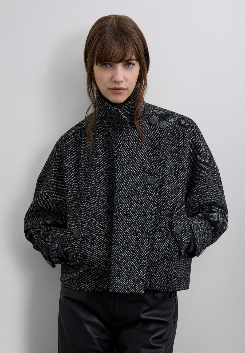 Chaqueta Sarga Cruzada de Scalpers para mujer. Pertenece a la categoría Chaquetas / Chaquetas. Temporada AW26. Color: BLACK. Chaqueta cruzada de sarga confeccionada en mezcla de lana. Regular fit. Ligeramente cropped. Cuello subido. Manga larga. Bolsillos laterales inclinados con tapeta.
