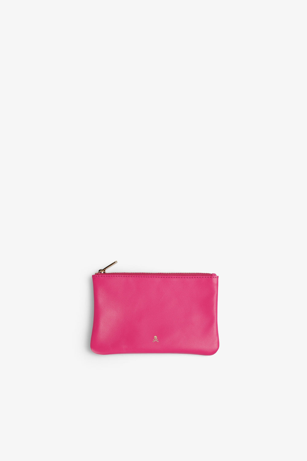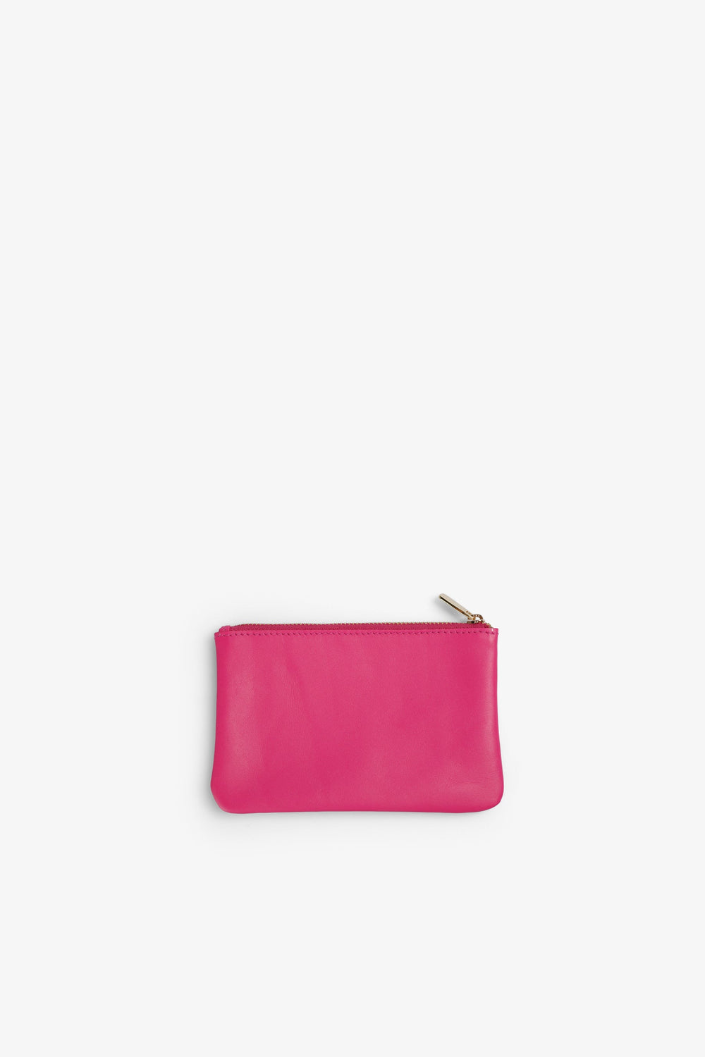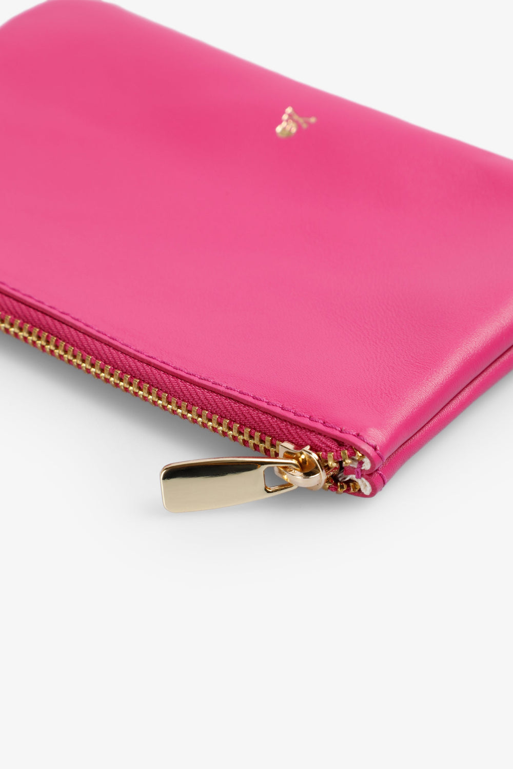 Monedero confeccionado en piel color flúor. Cierre con cremallera y logo grabado a contraste en metalizado.
