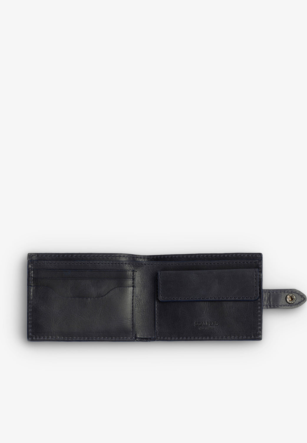 Billetera Piel Calavera Grabada de Scalpers para hombre. Pertenece a la categoría Accesorios Hombre / Billeteras. Temporada AW26. Color: DARK BLUE. Cartera con calavera y logo grabado. Confeccionada en 100% piel. Ranuras y compartimentos interiores.