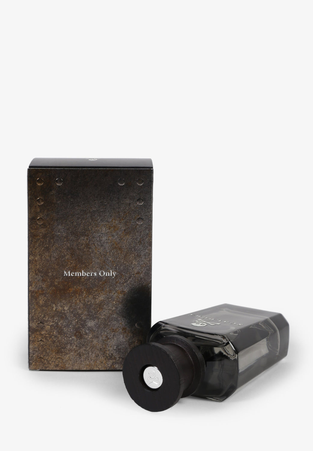 Perfume Scalpers The Club con notas de salida de pomelo, cacao y salvia; notas de corazón lavanda, acorde jengibre; y notas de fondo ámbar gris, vetiver, pachuli y maderas clandestinas.