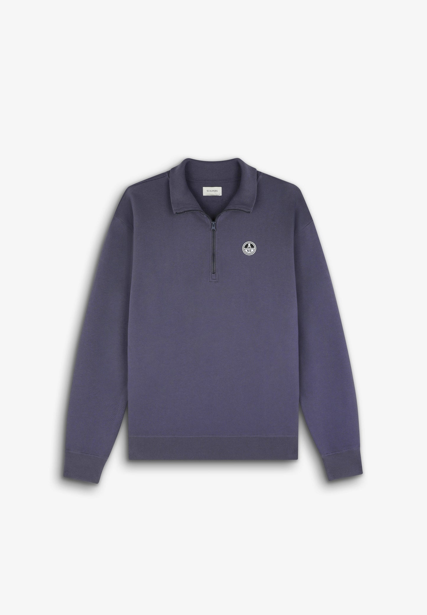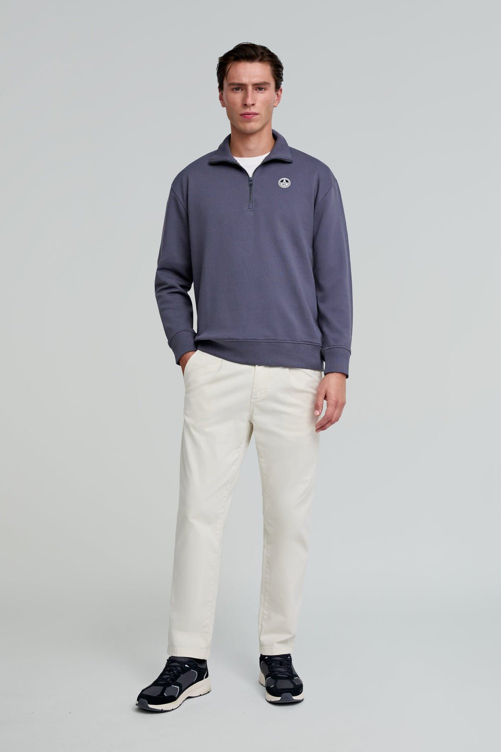 Sudadera confeccionada en 100% algodón BCI. Regular fit, cuello con cremallera y manga larga. Detalle de parche.
