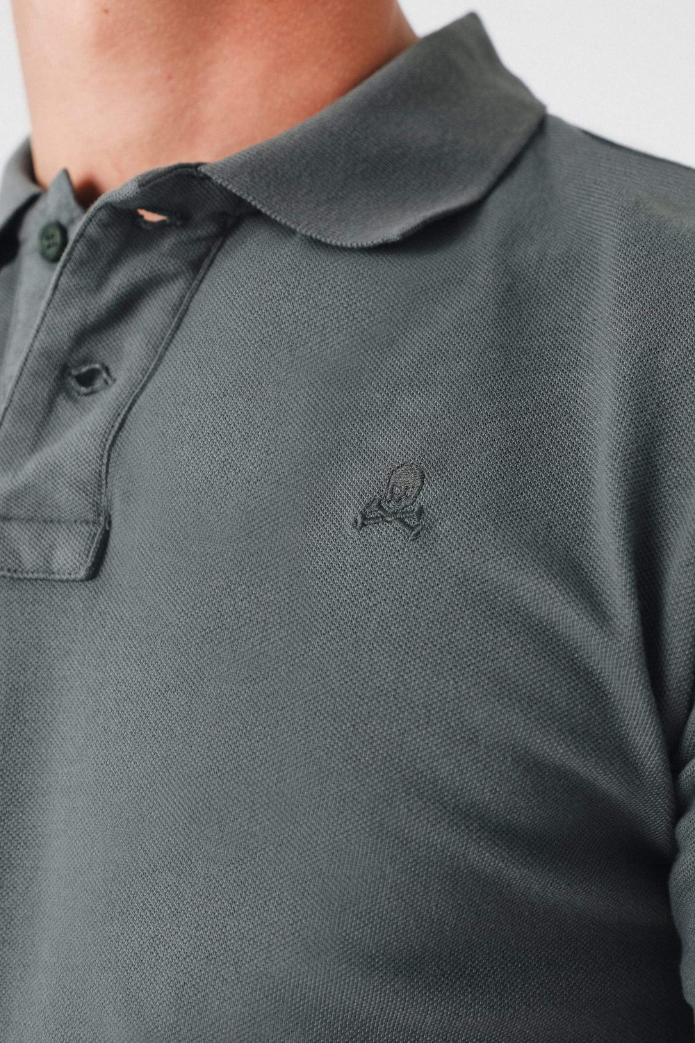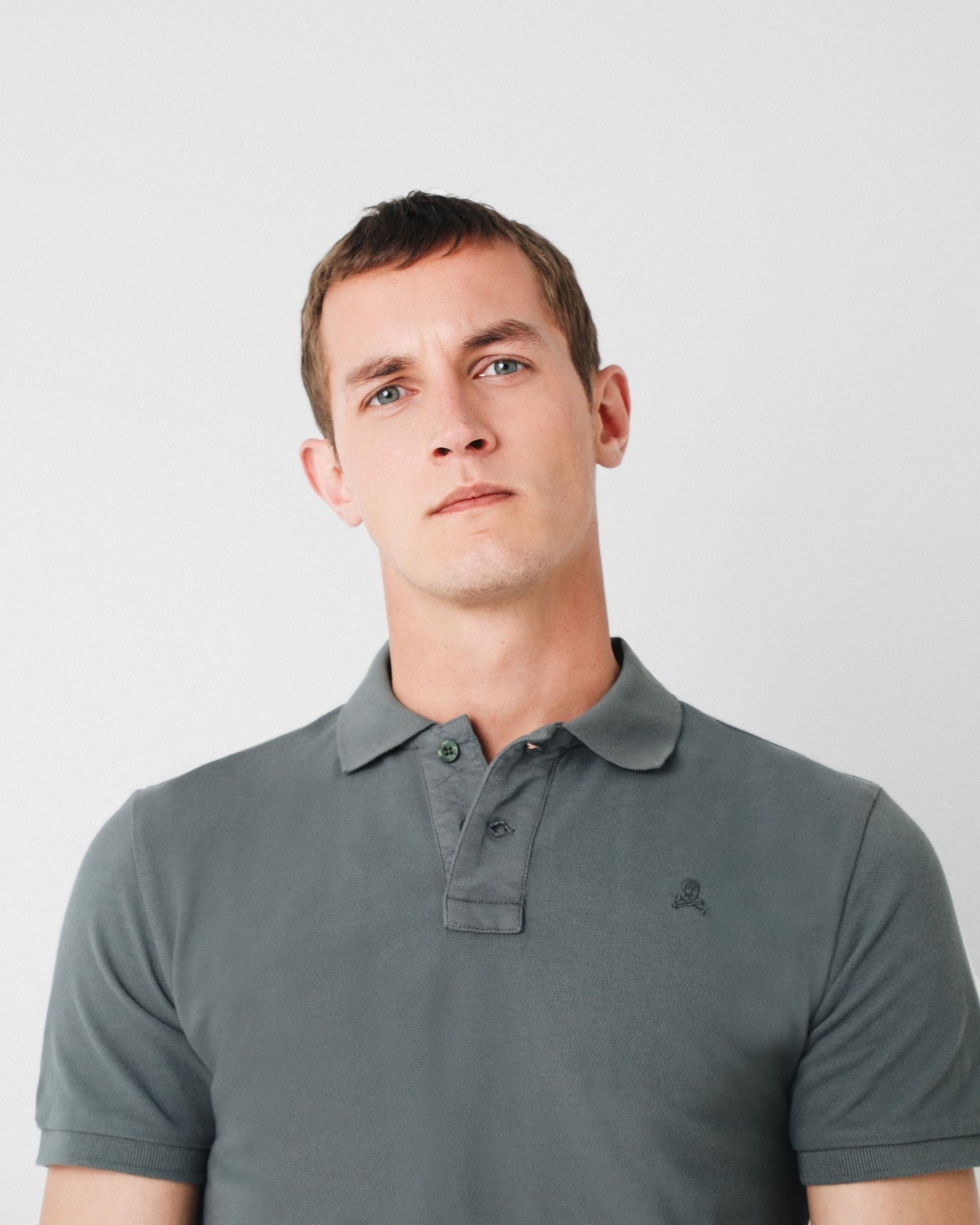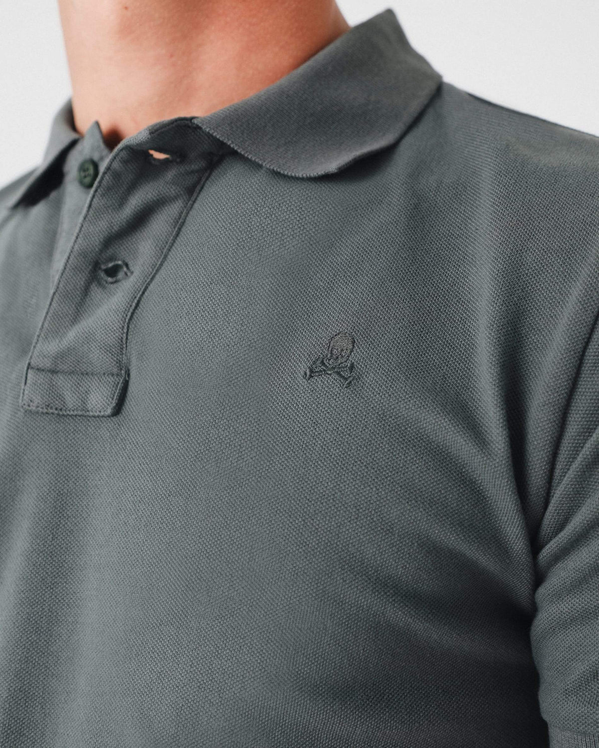 Polo confeccionado en tejido 100% algodón. Corte Slim Fit, cuello clásico con botones y tapeta. Manga corta con ribs. Detalle de calavera bordada en el pecho.