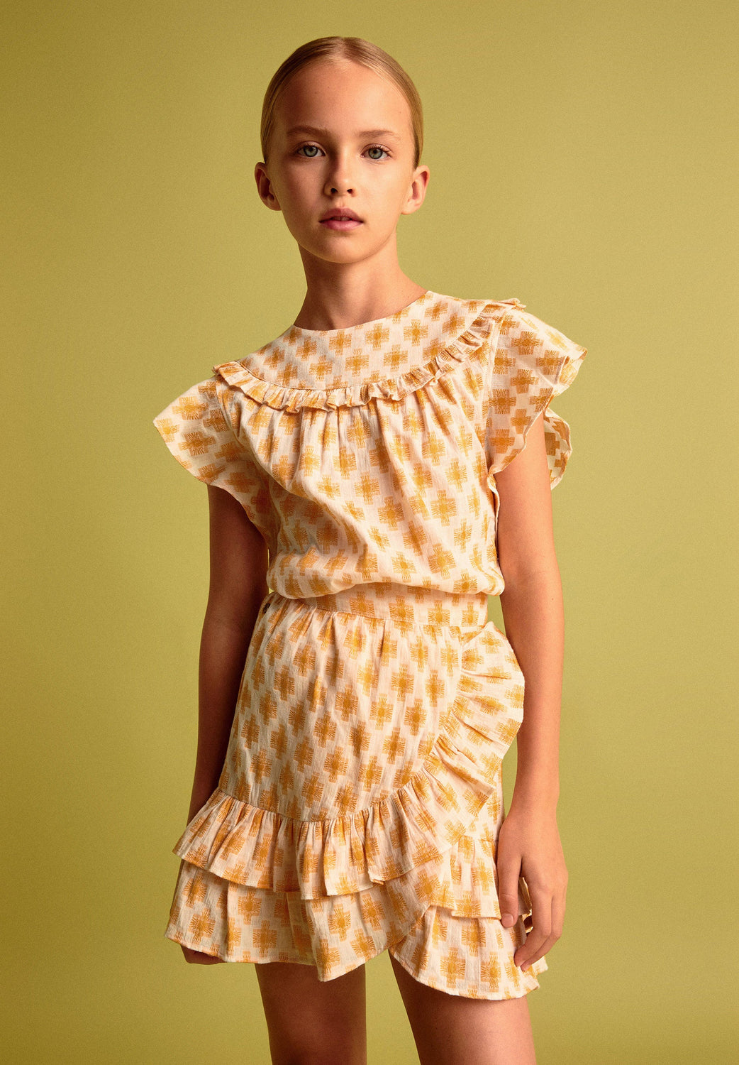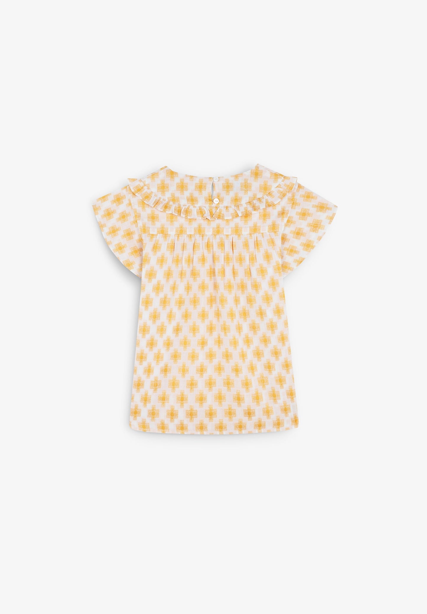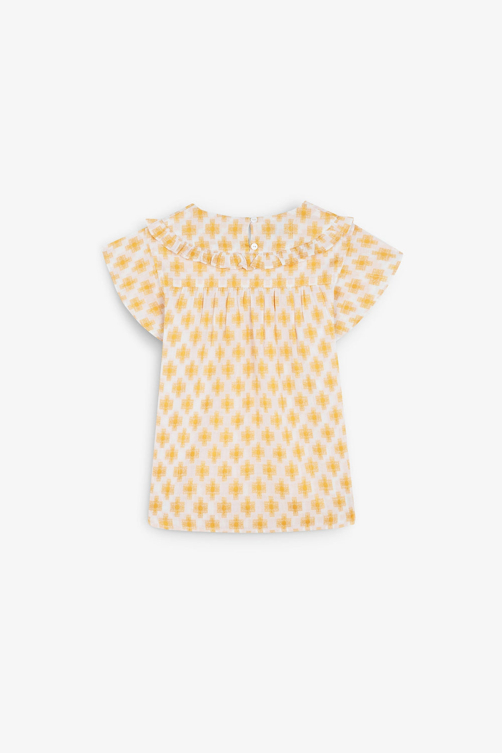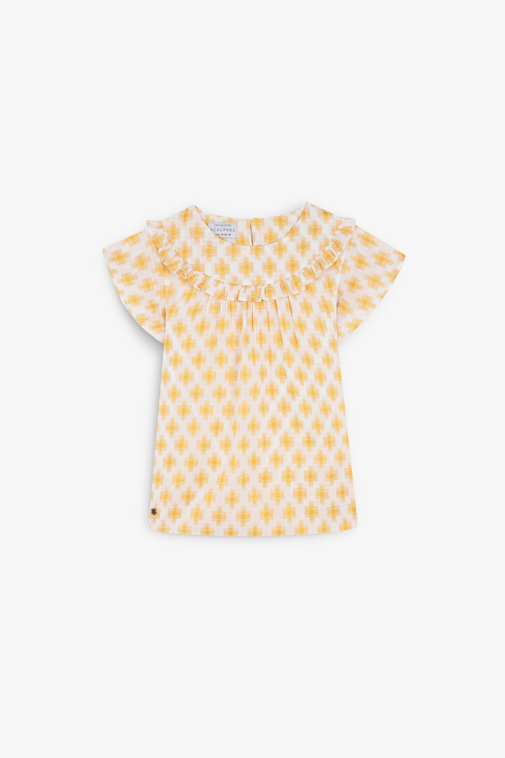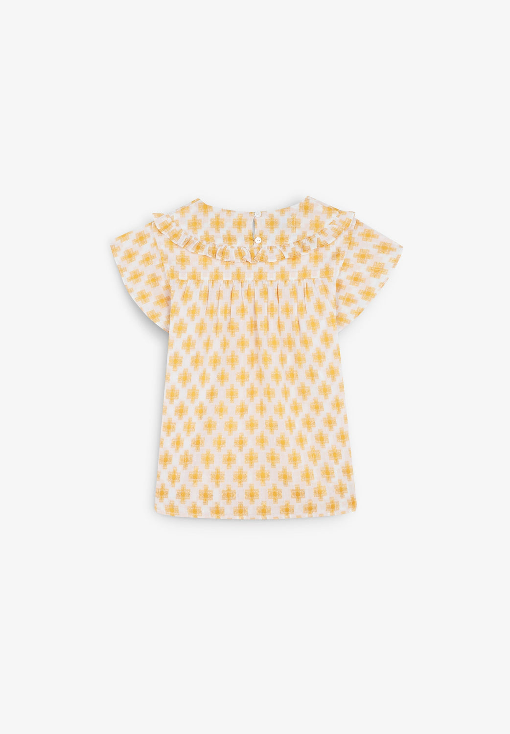 Blusa estampada con volante en canesú.