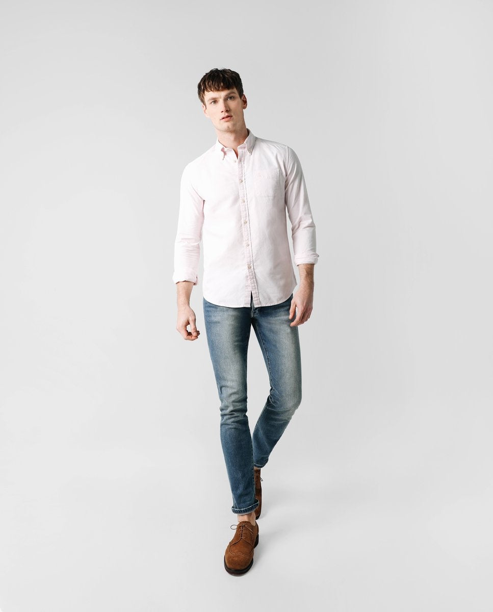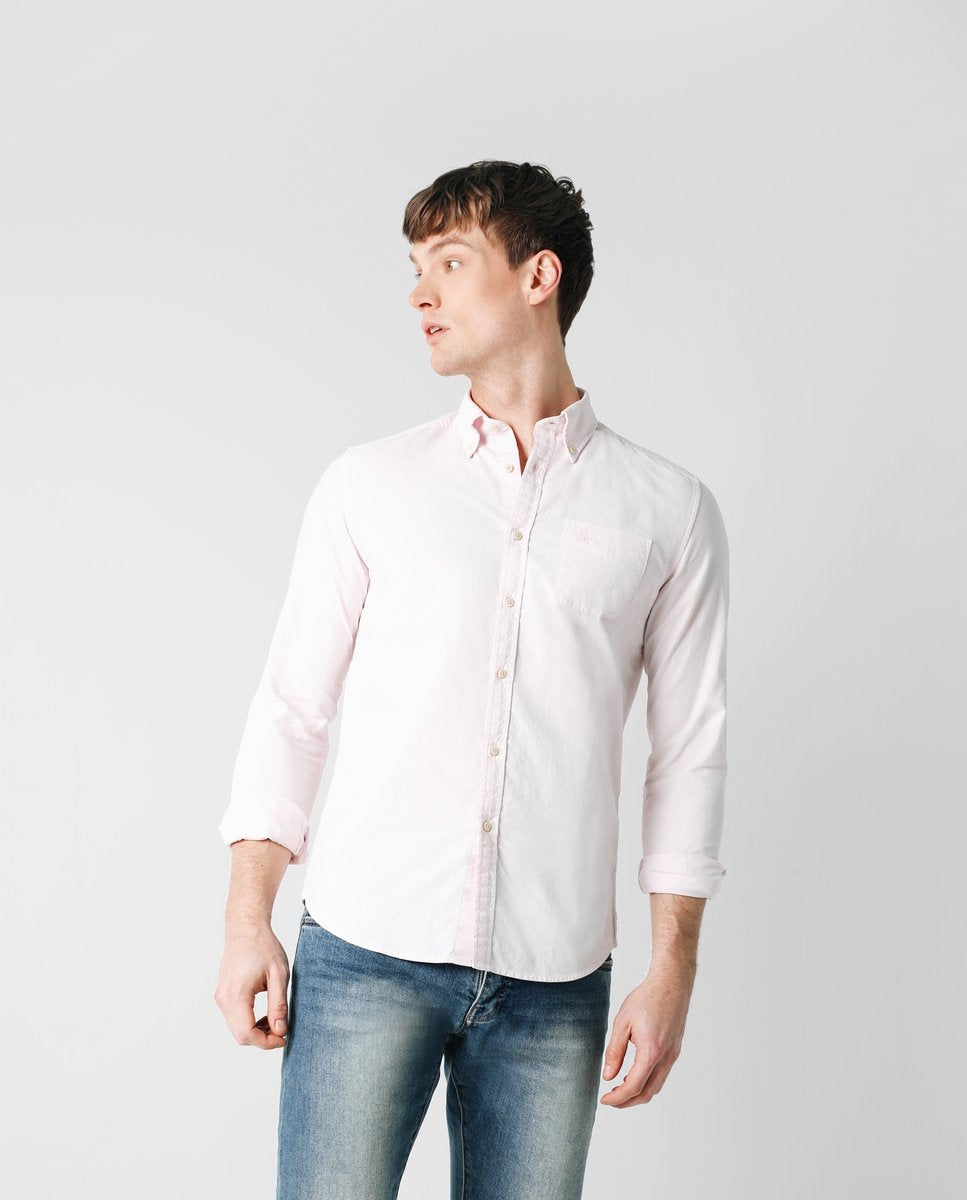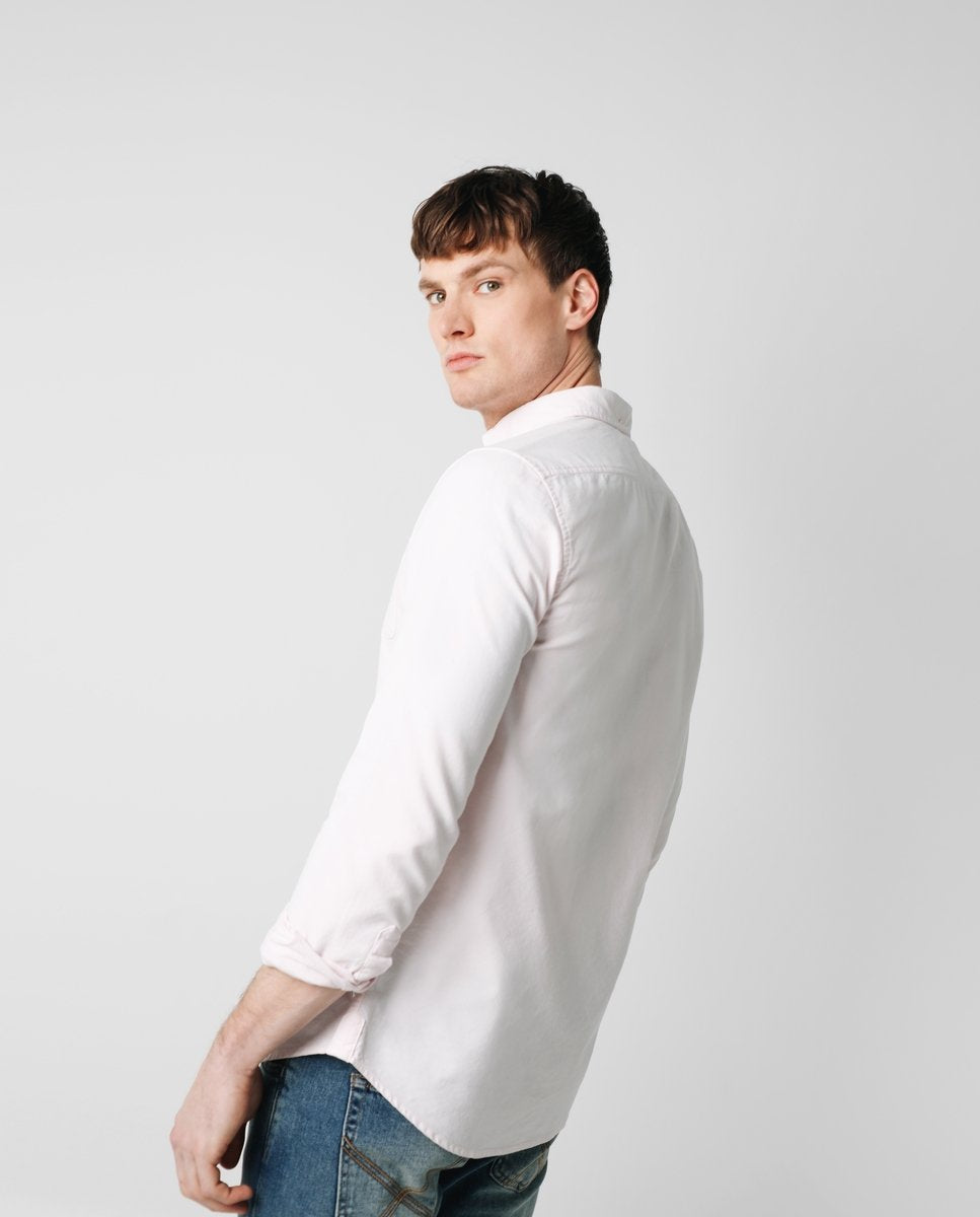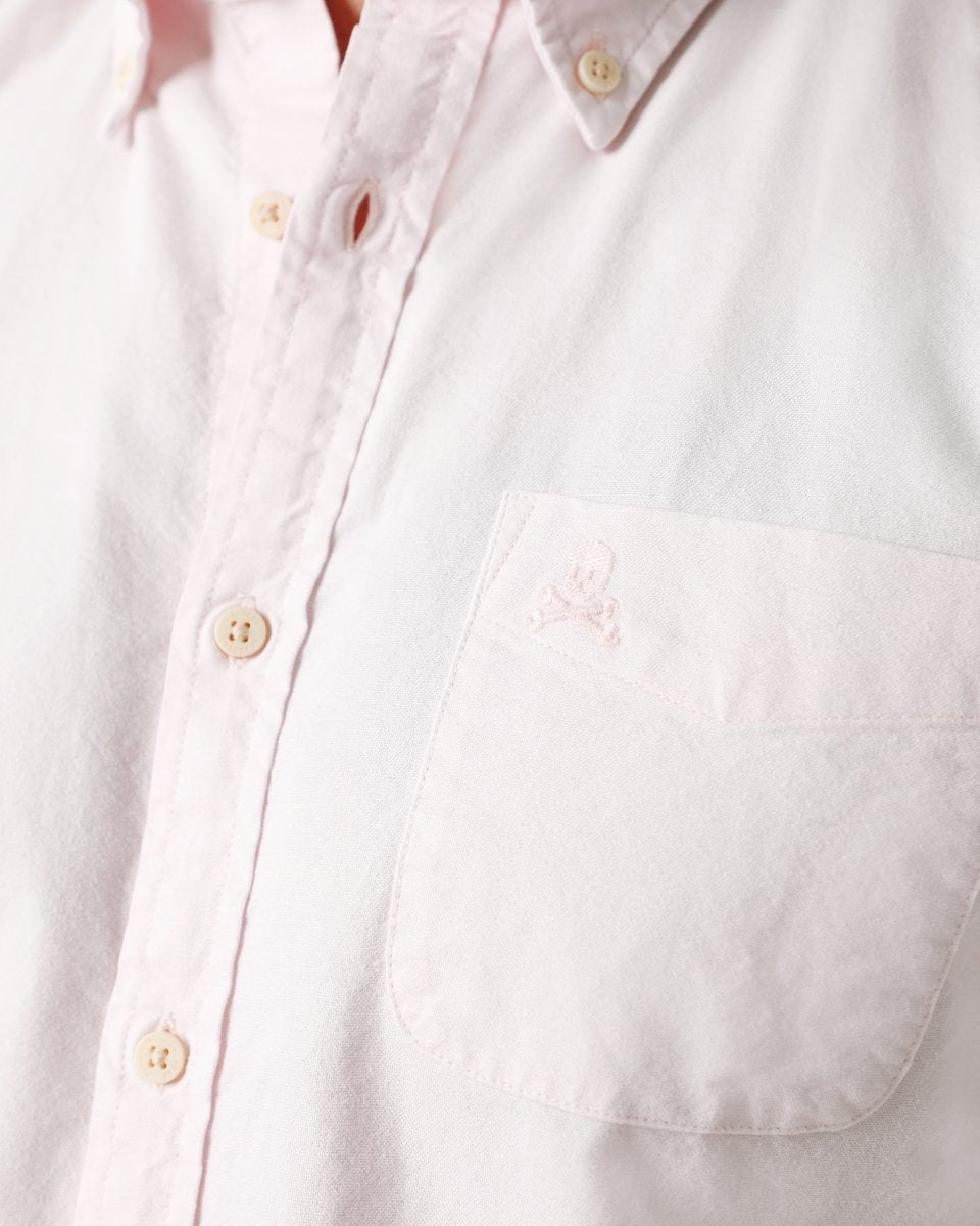 Camisa Oxford Peach Garment Dyed con lavado agresivo confeccionada en tejido de algodón. Corte Regular Fit, cuello button down, cierre con botones a tono y bolsillo de plastrón a la altura del pecho con calavera bordada a tono. Manga larga terminada en puño simple. Disponible en cinco colores.