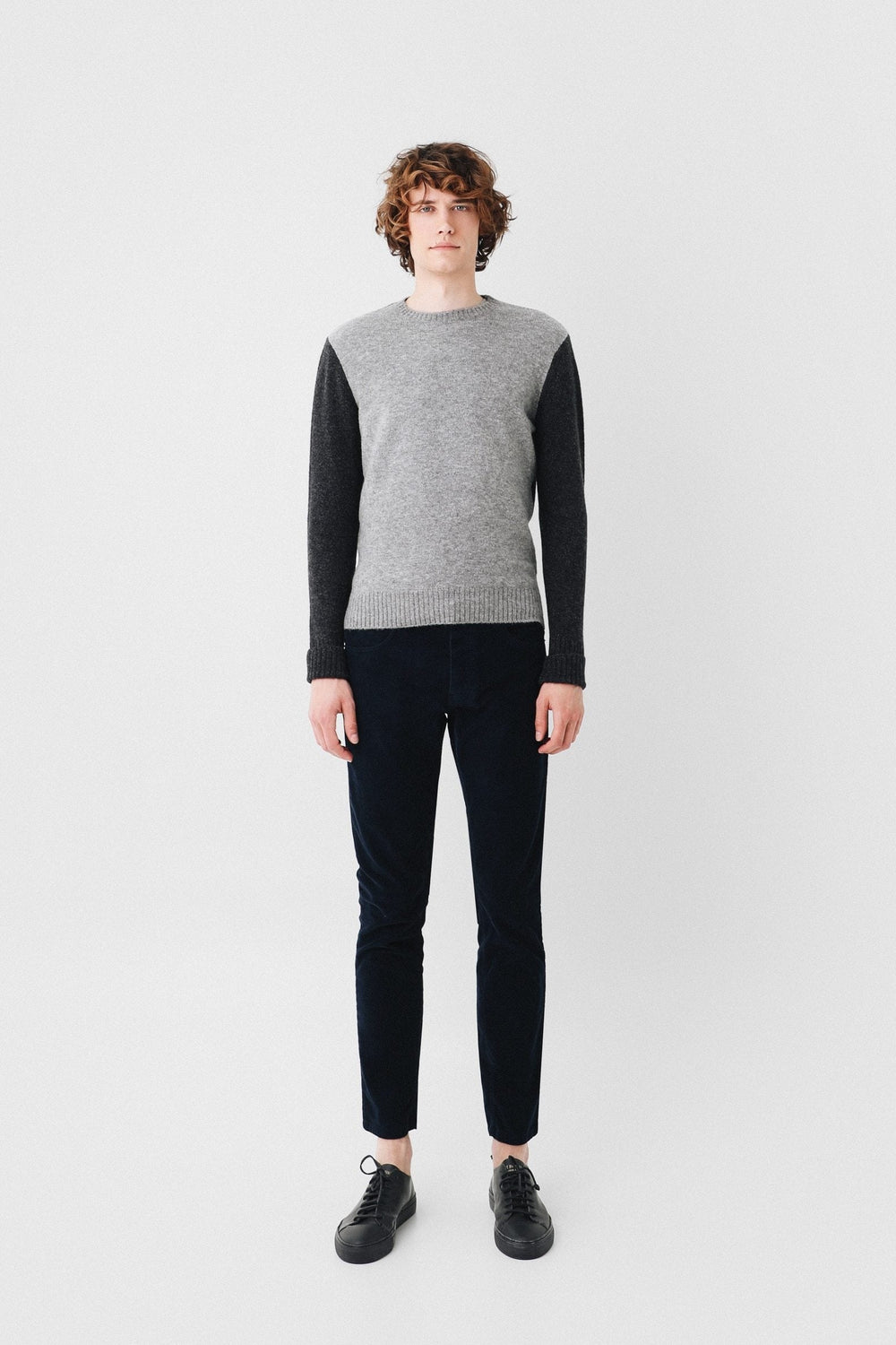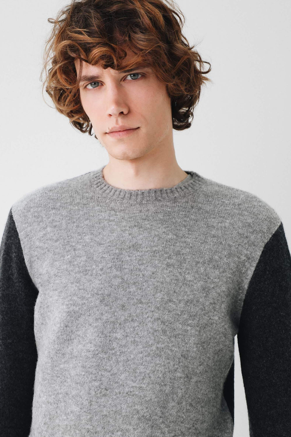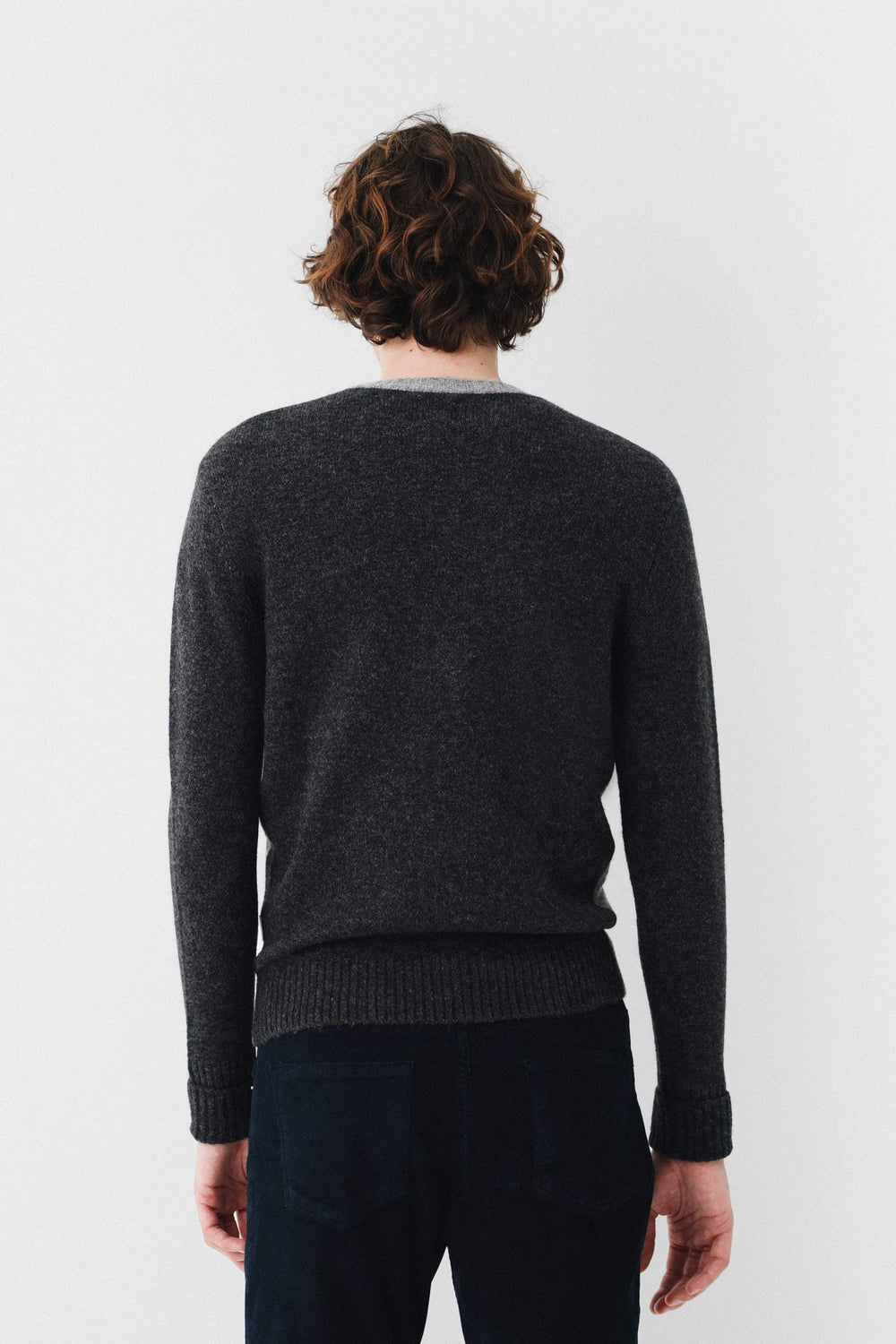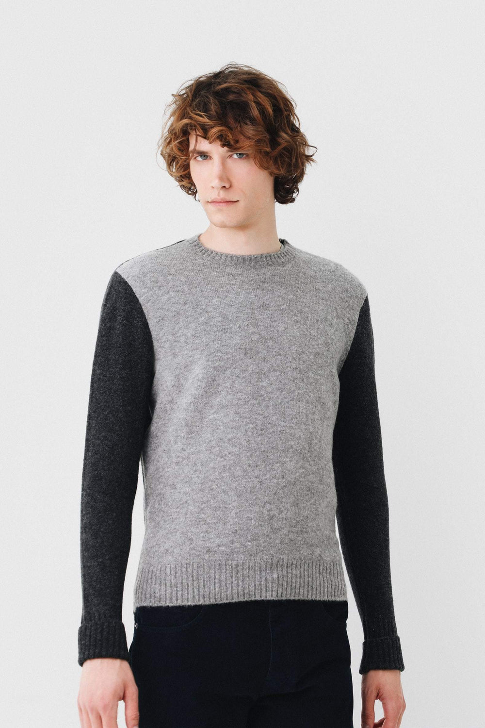 Jersey confeccionado en mezcla de lana. Corte Regular Fit, cuello redondo y manga larga. Detalle de ribs en varios tonos.