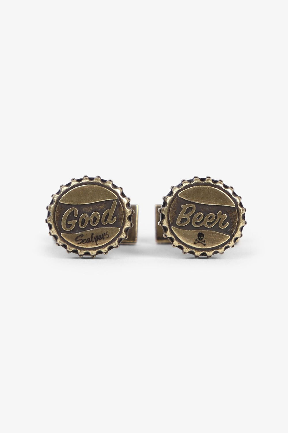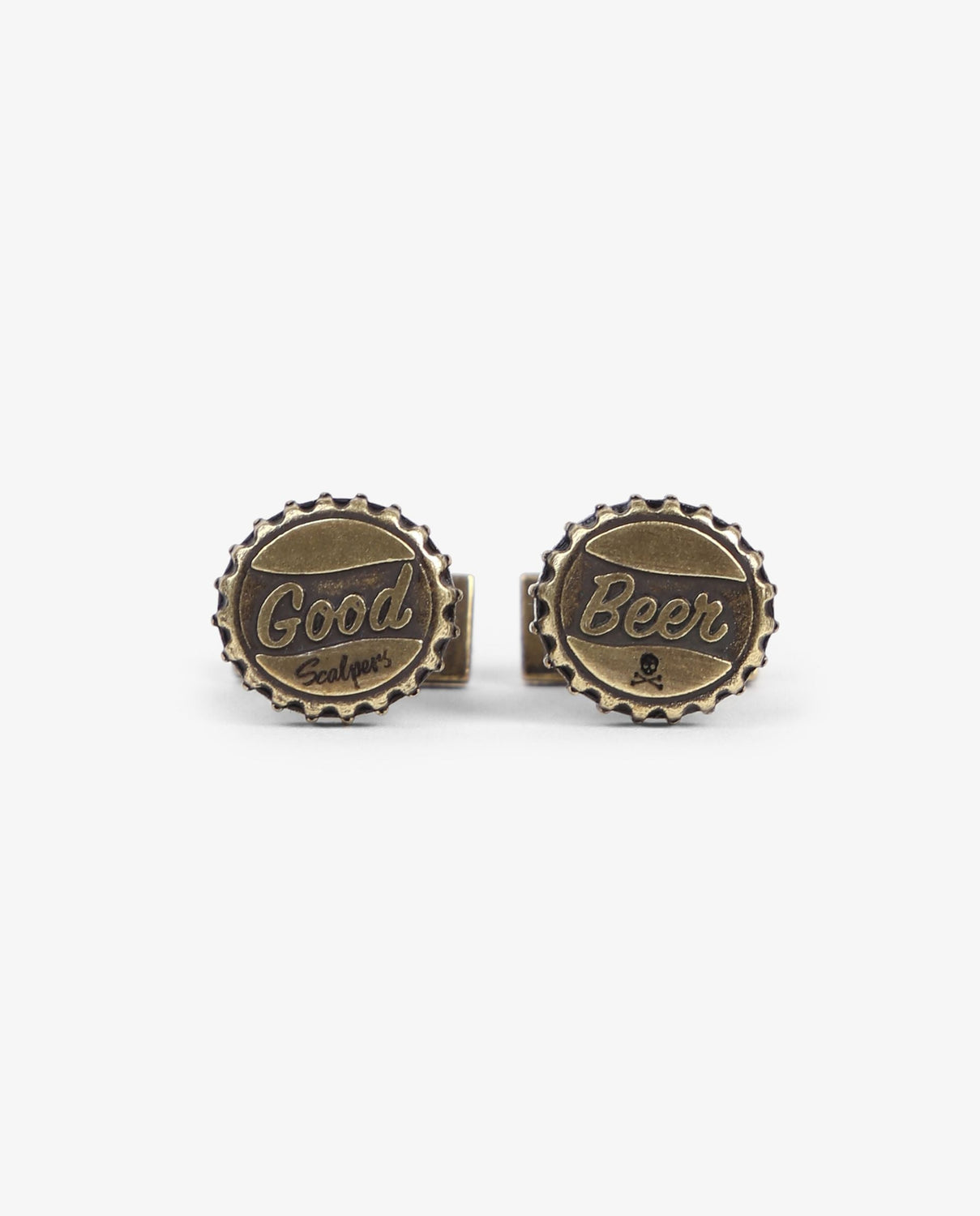 Gemelos de latón con forma de tapón y Scalpers grabado en la parte trasera. Presentado en caja.