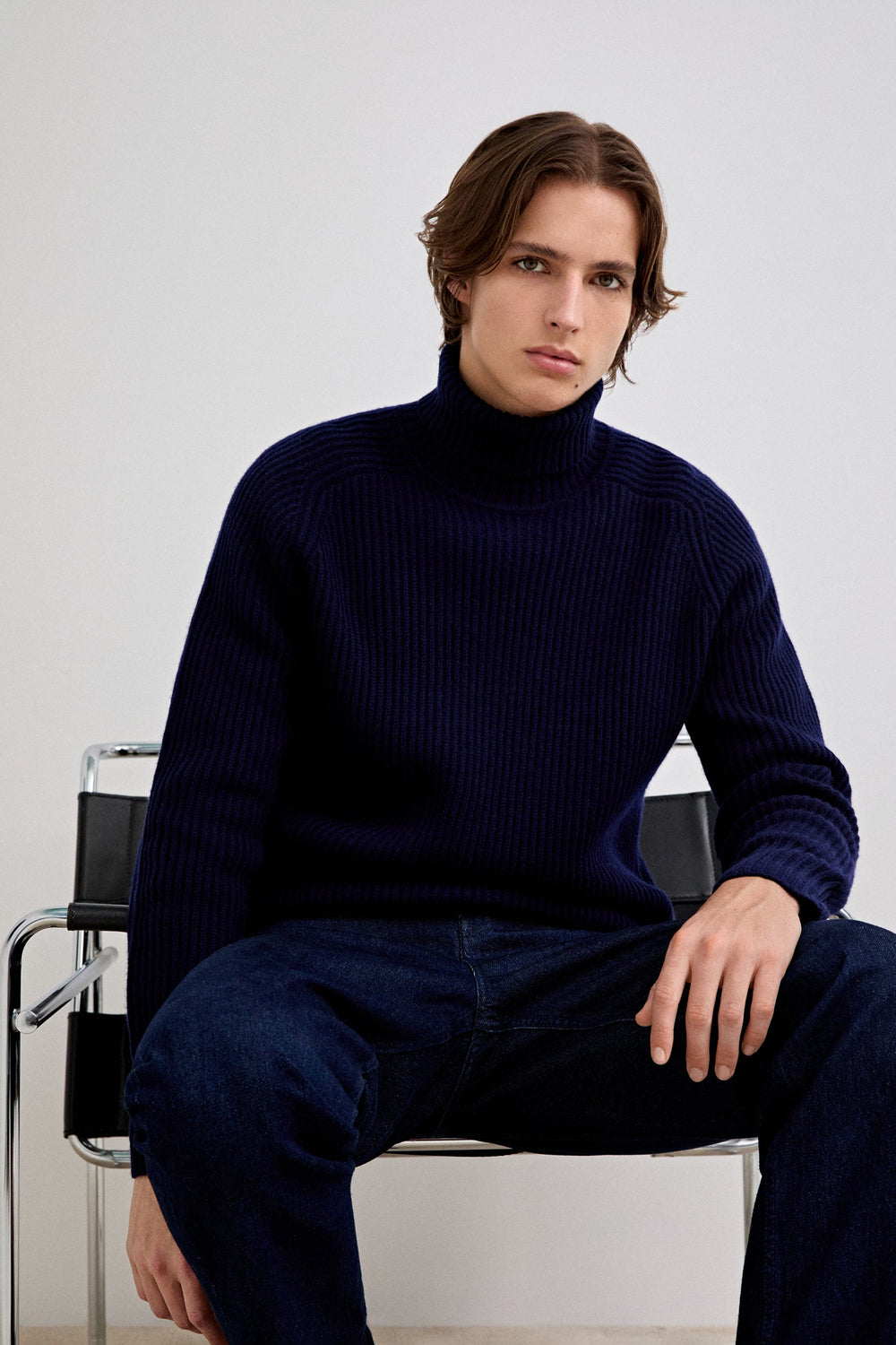 Jersey de punto confeccionado en 100% lana. Regular fit, cuello alto y manga larga.
