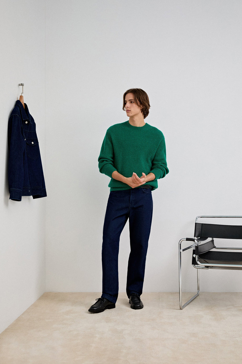 Jersey de punto confeccionado en mezcla de lana. Regular fit, cuello redondo y manga larga. Etiqueta lateral.