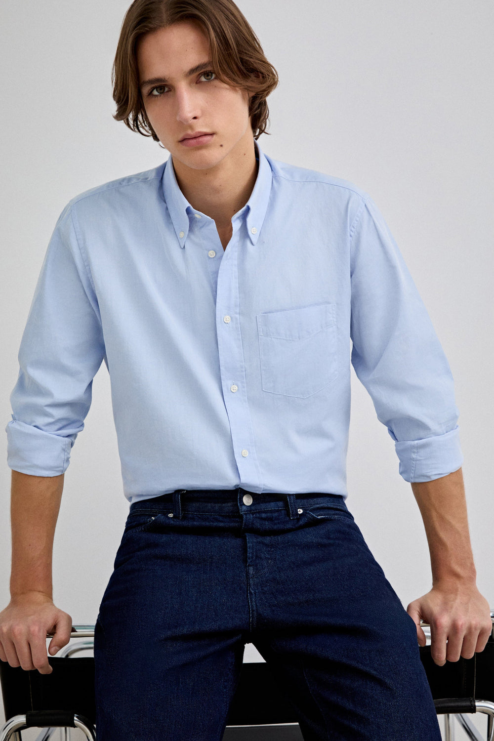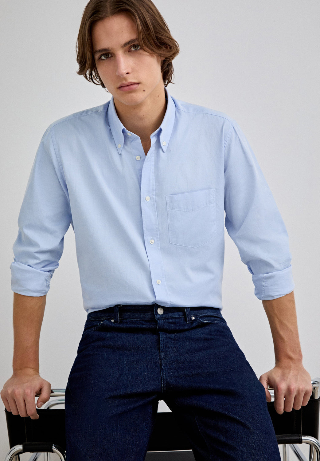 Camisa oxford confeccionada en 100% algodón. Regular fit, cuello con botones y manga larga terminada en puño con botones. Bolsillo en pecho.