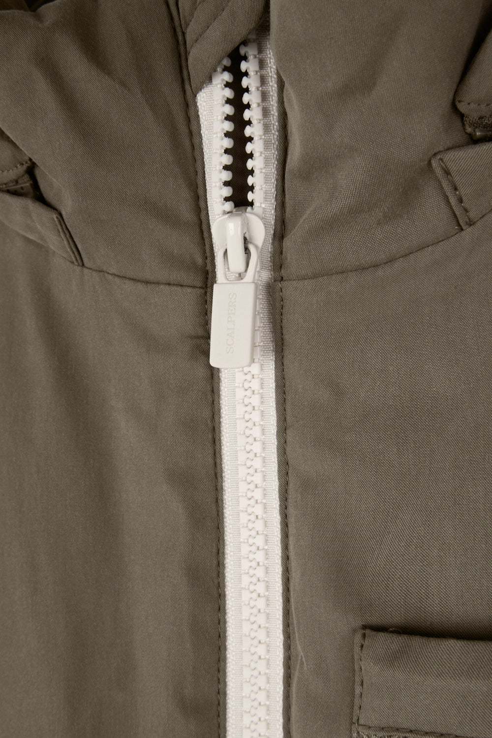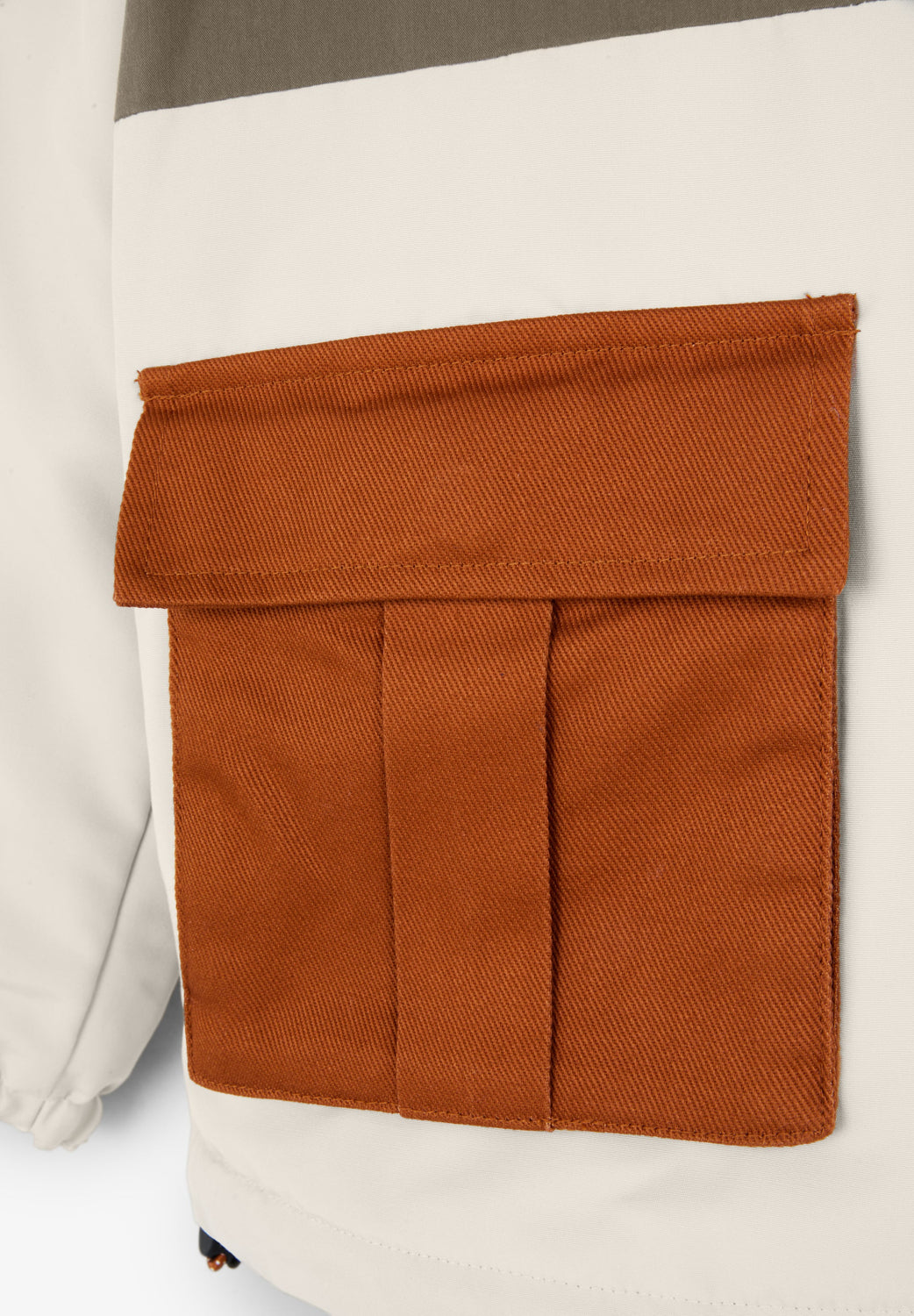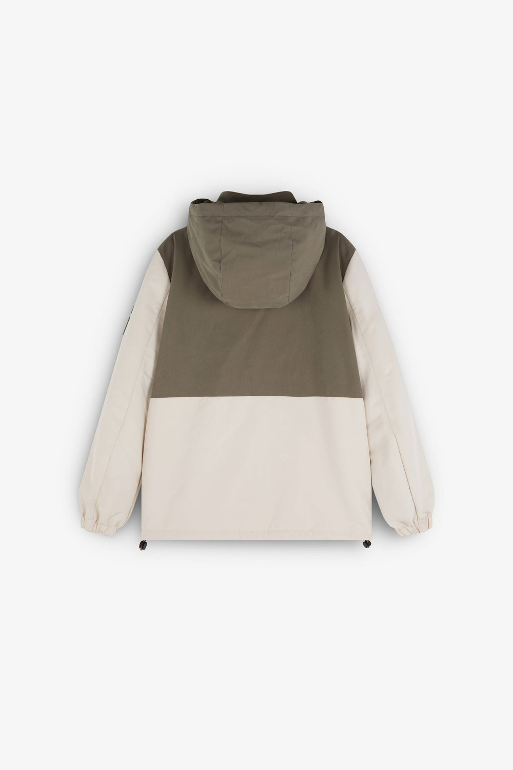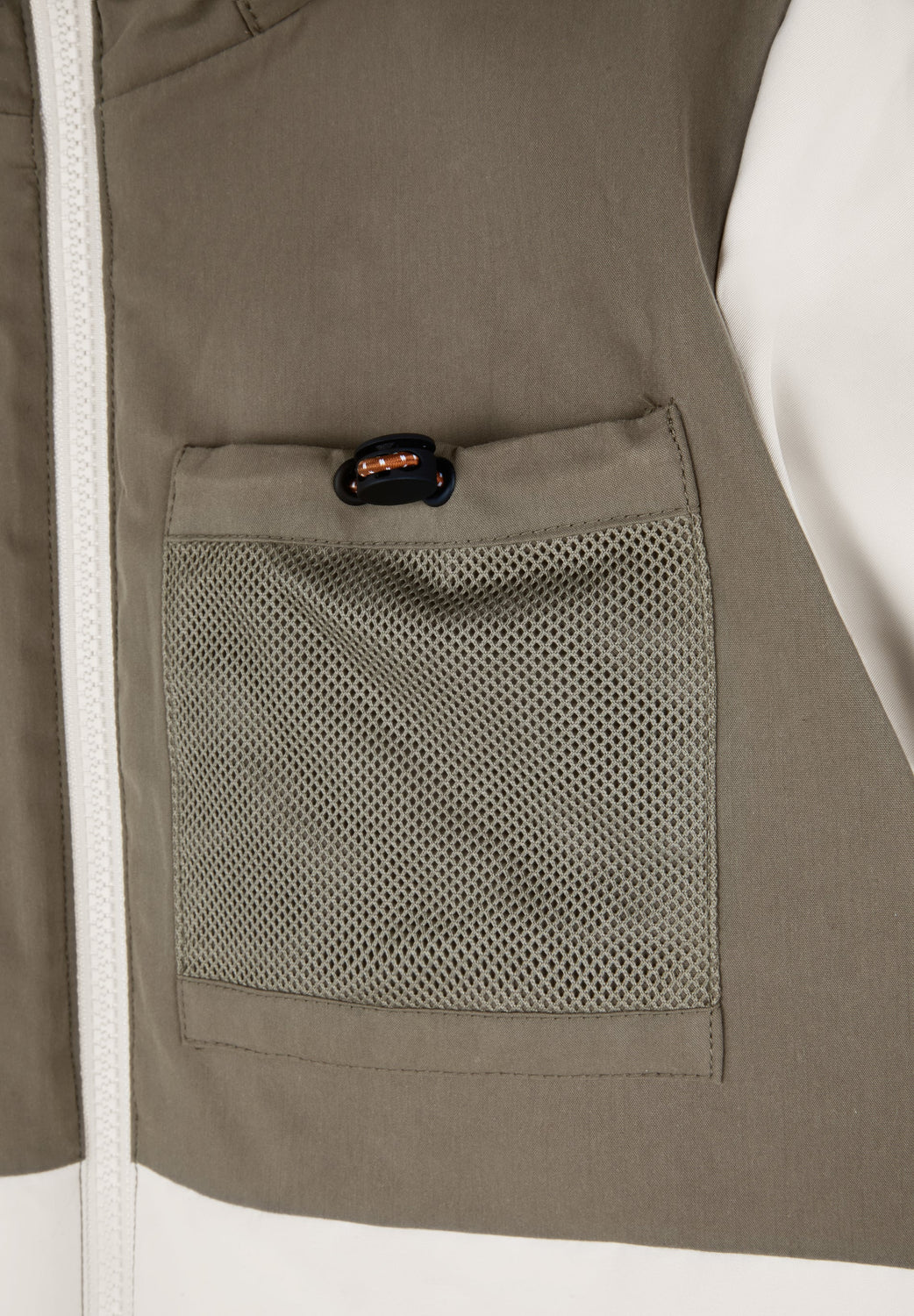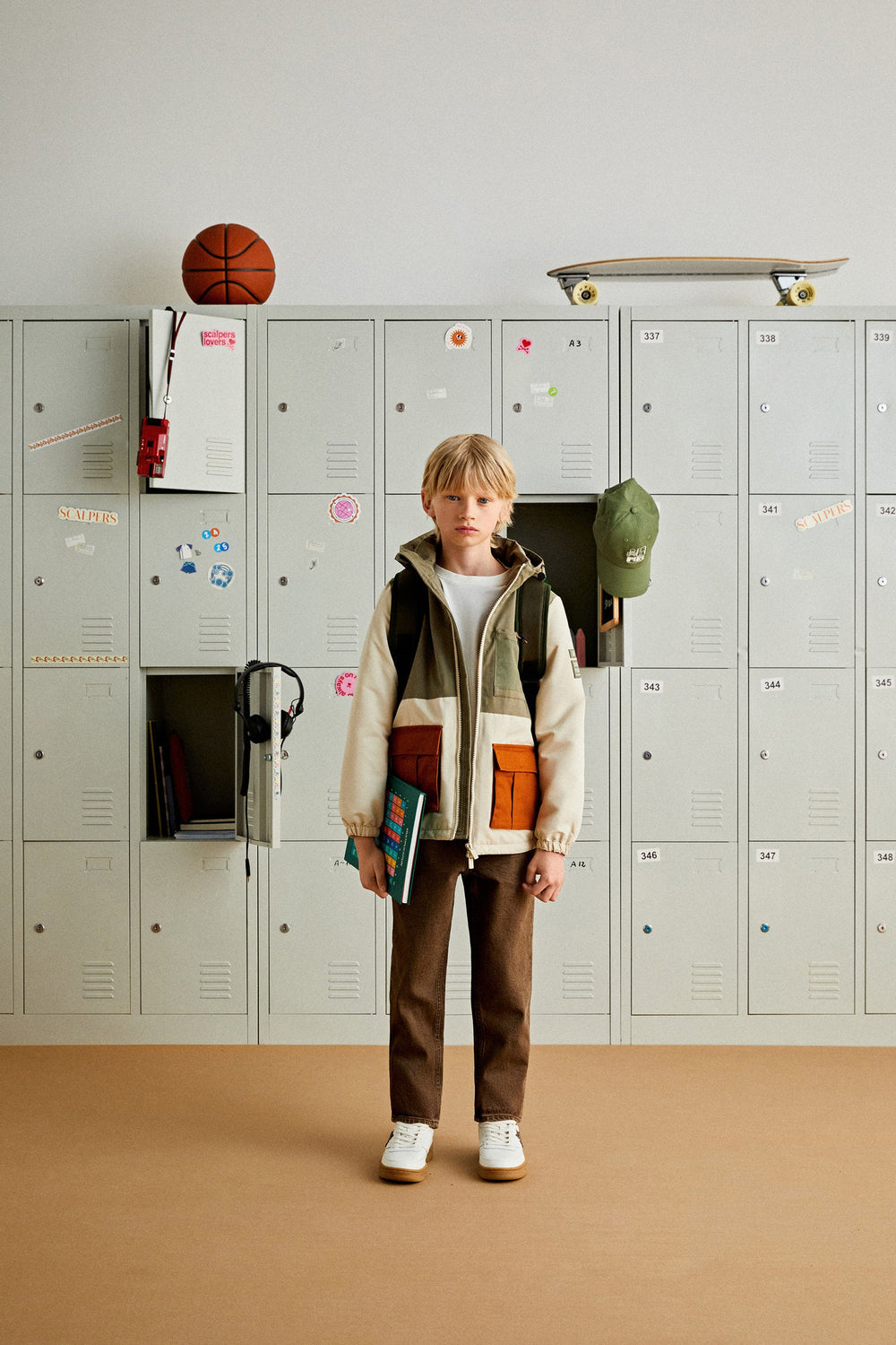 Chaqueta confeccionada en algodón y tejido reciclado. Regular Fit, cuello con capucha ajustable y cierre con cremallera. Manga larga terminada en puño y parche lateral. Bolsillos frontales y en el pecho y ajustable en el bajo. Forro de borrego.