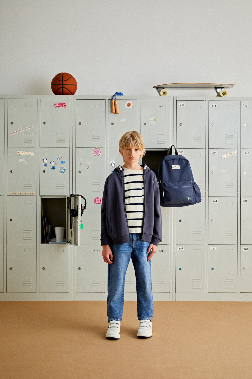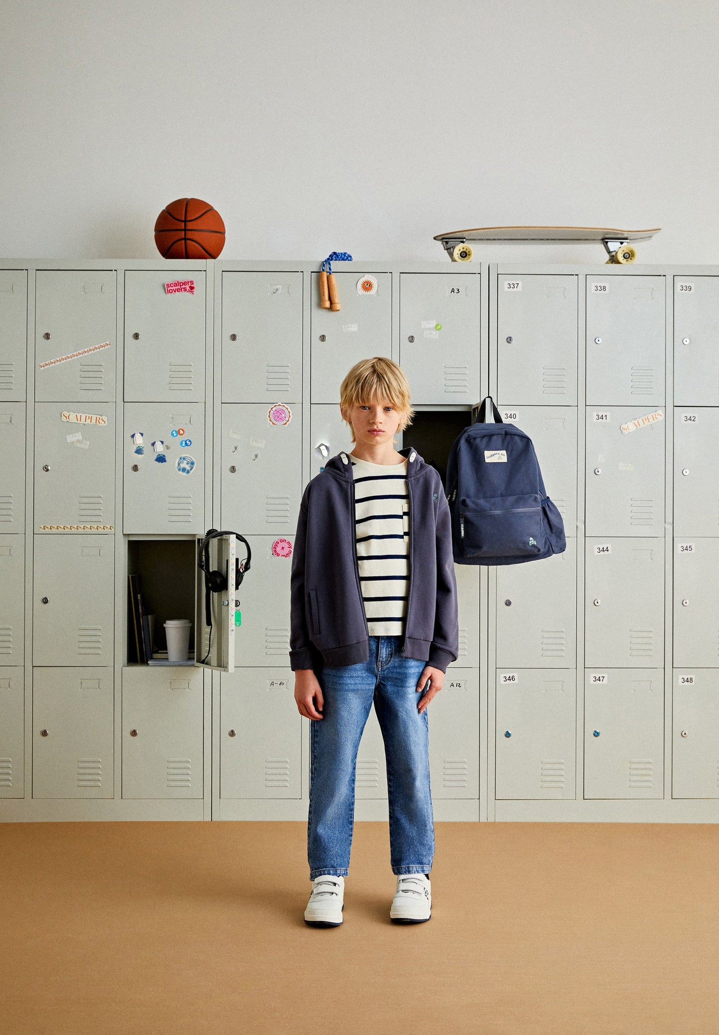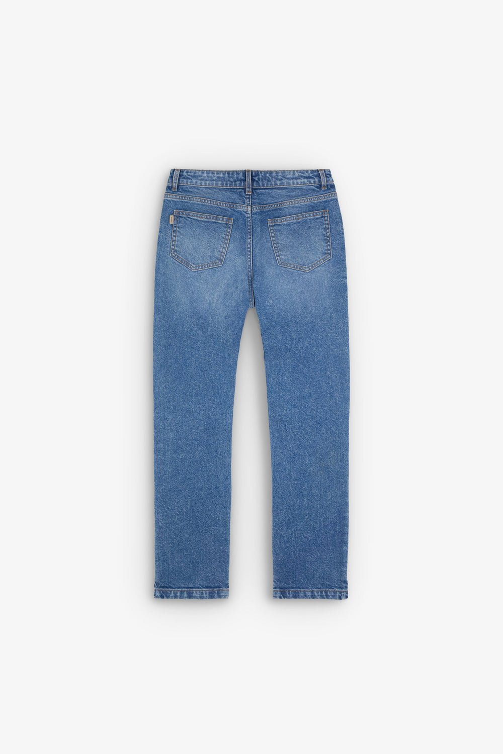Jeans rectos confeccionados en algodón ligeramente elástico. Regular fit, cierre con botón y cremallera. Trabillas en cintura y bolsillos laterales y traseros.