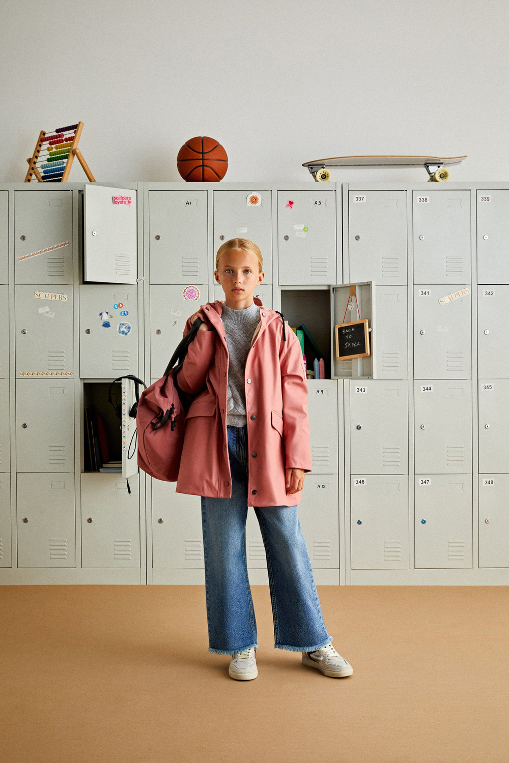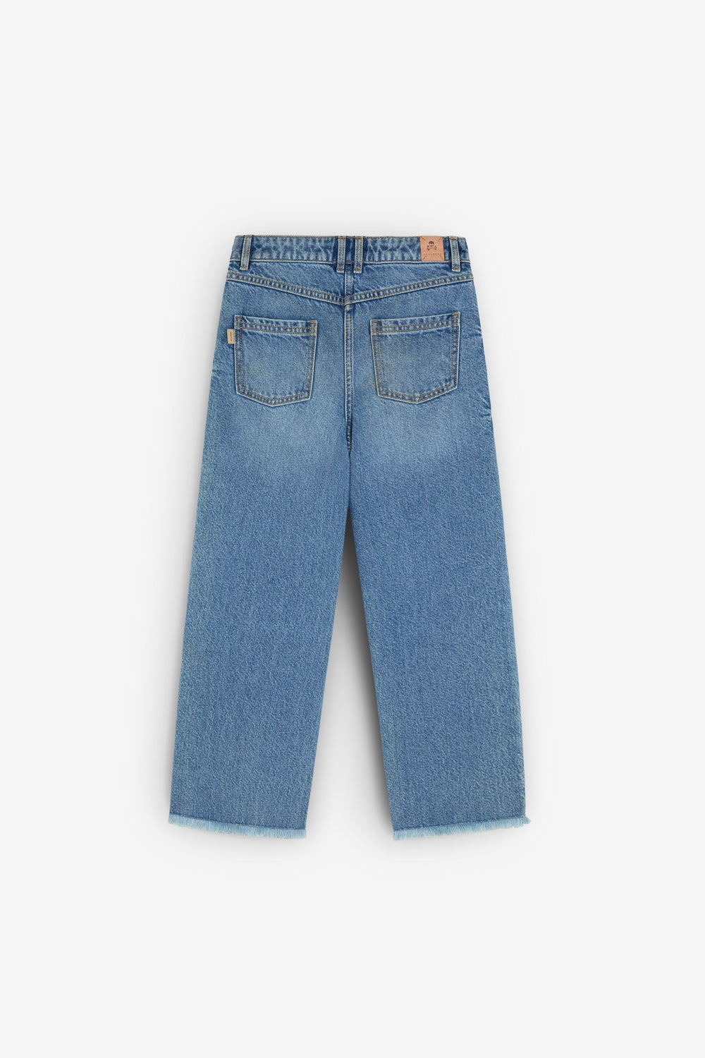 Jeans confeccionados en 100% algodón BCI. Corte culotte con tiro alto, cierre con botón y cremallera y bolsillos laterales y traseros.