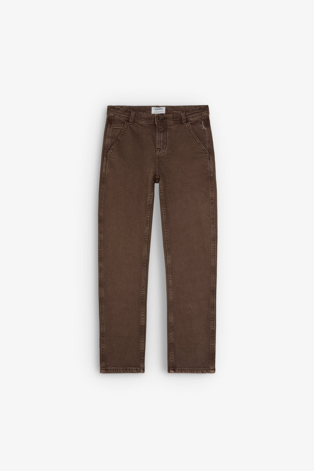 Pantalón recto lavado confeccionado en algodón ligeramente elástico. Corte recto, cerre con botón y cremallera, bolsillos delanteros y trasero.