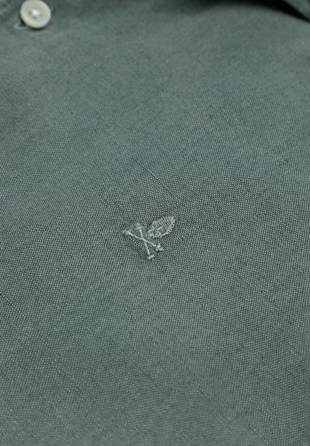 Camisa lino con calavera bordada a tono. Confeccionada en mezcla de lino y algodón. Corte regular Fit. Cuello cutaway. Cierre con botones. Manga larga terminada en puño con botones.