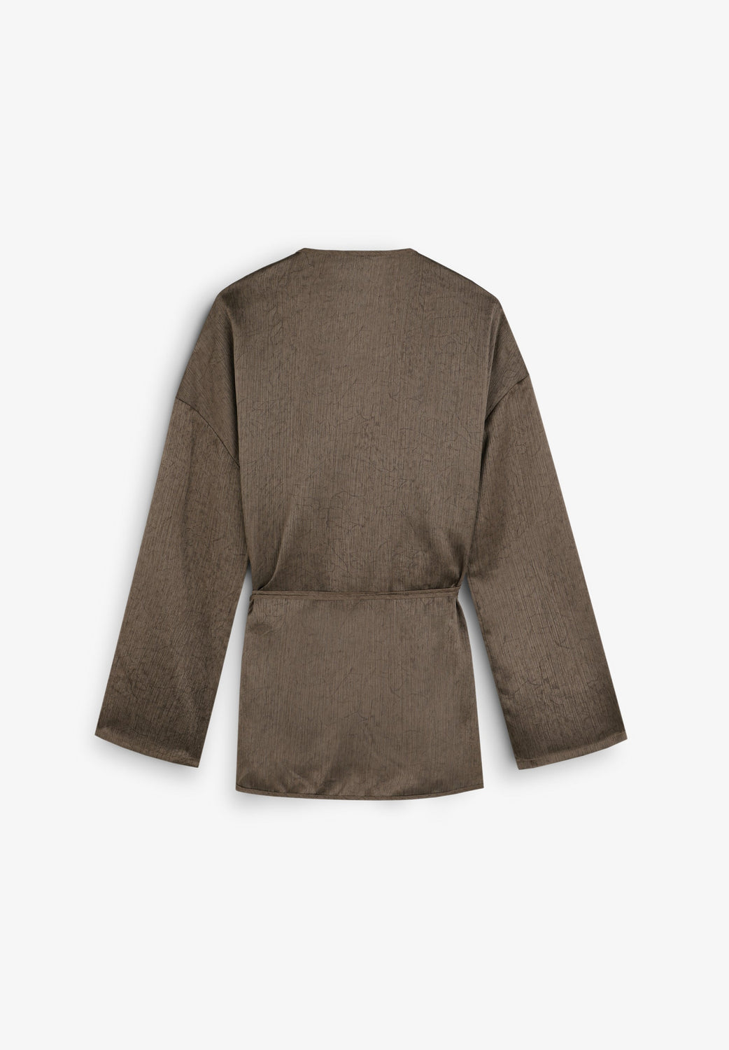 Kaftan asimétrico fluido de manga larga. Escote abertura en pico. Ajustable en cintura mediante cordón.