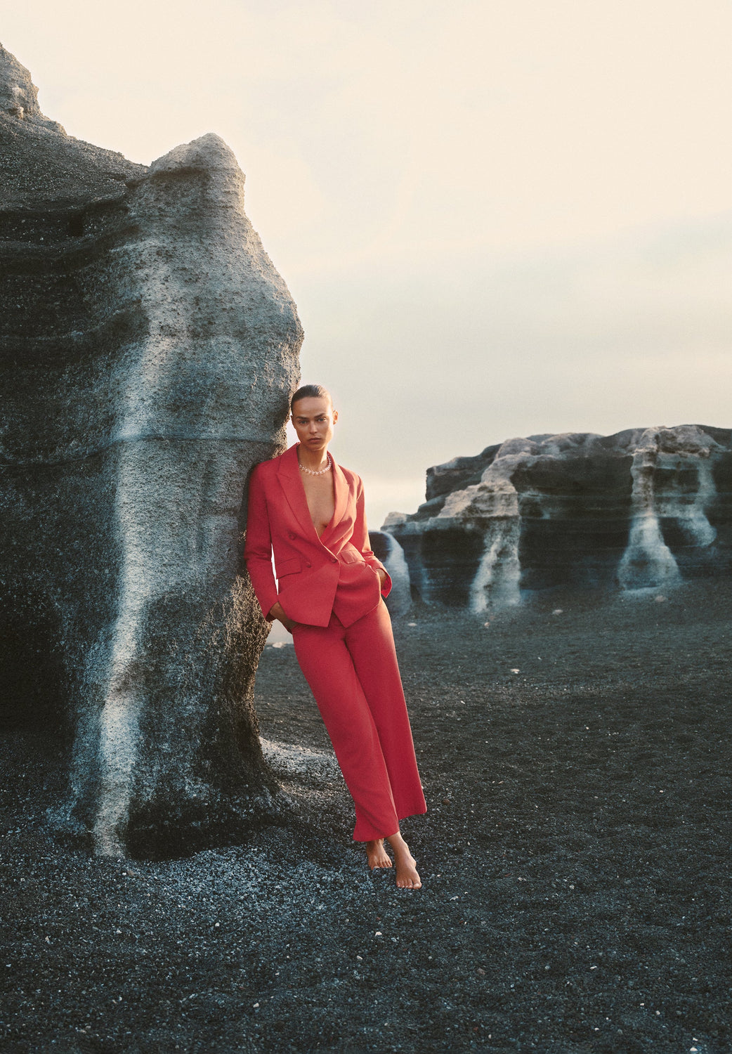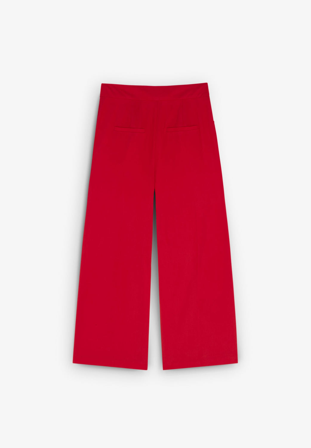 Pantalón confeccionado en material fluido en mezcla de algodón. Corte regular fit, recto con cierre de cremallera y botón prolongado en cinturilla. Pinzas frontales y bolsillos inclinados. Bolsillos de vivo traseros.