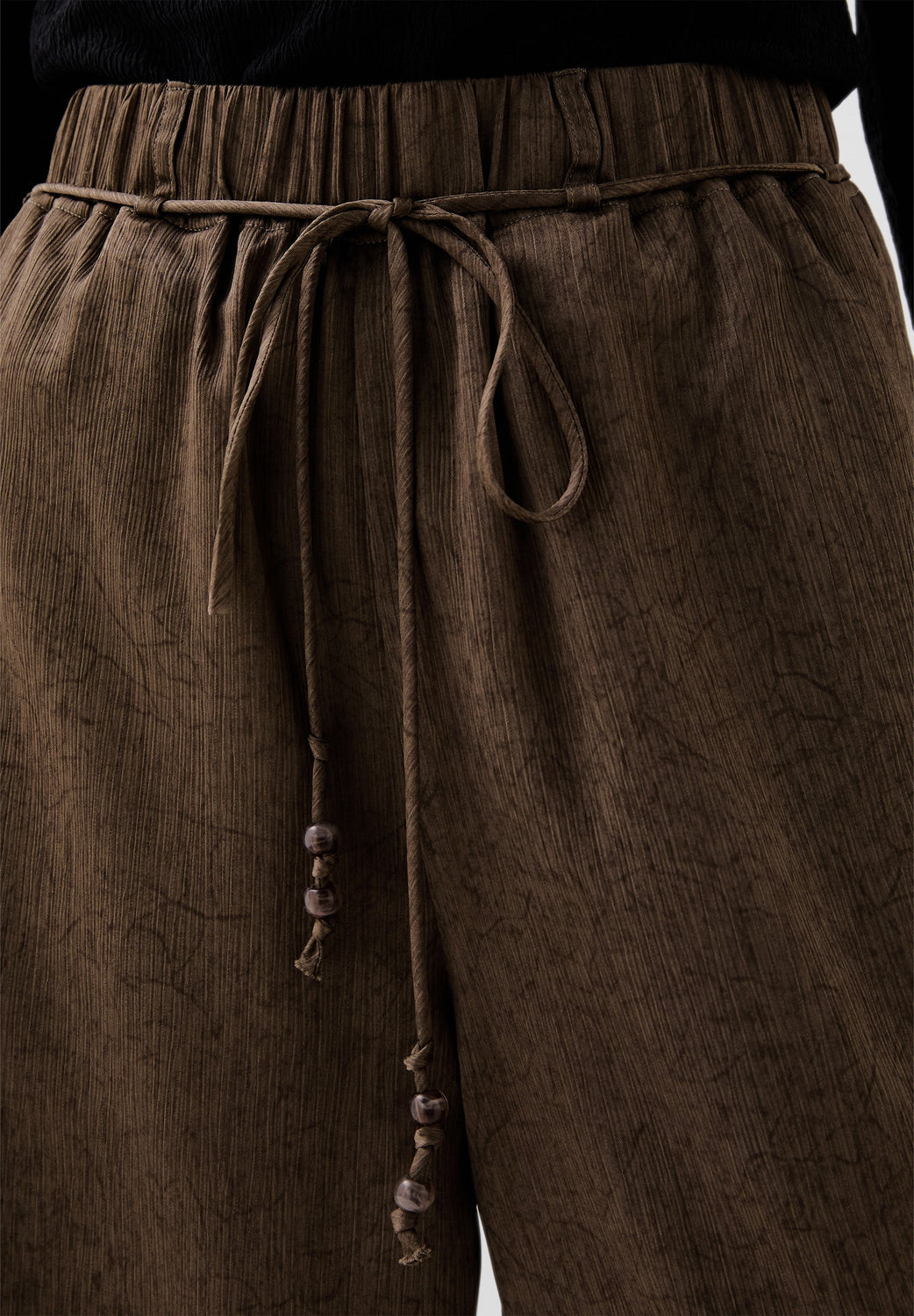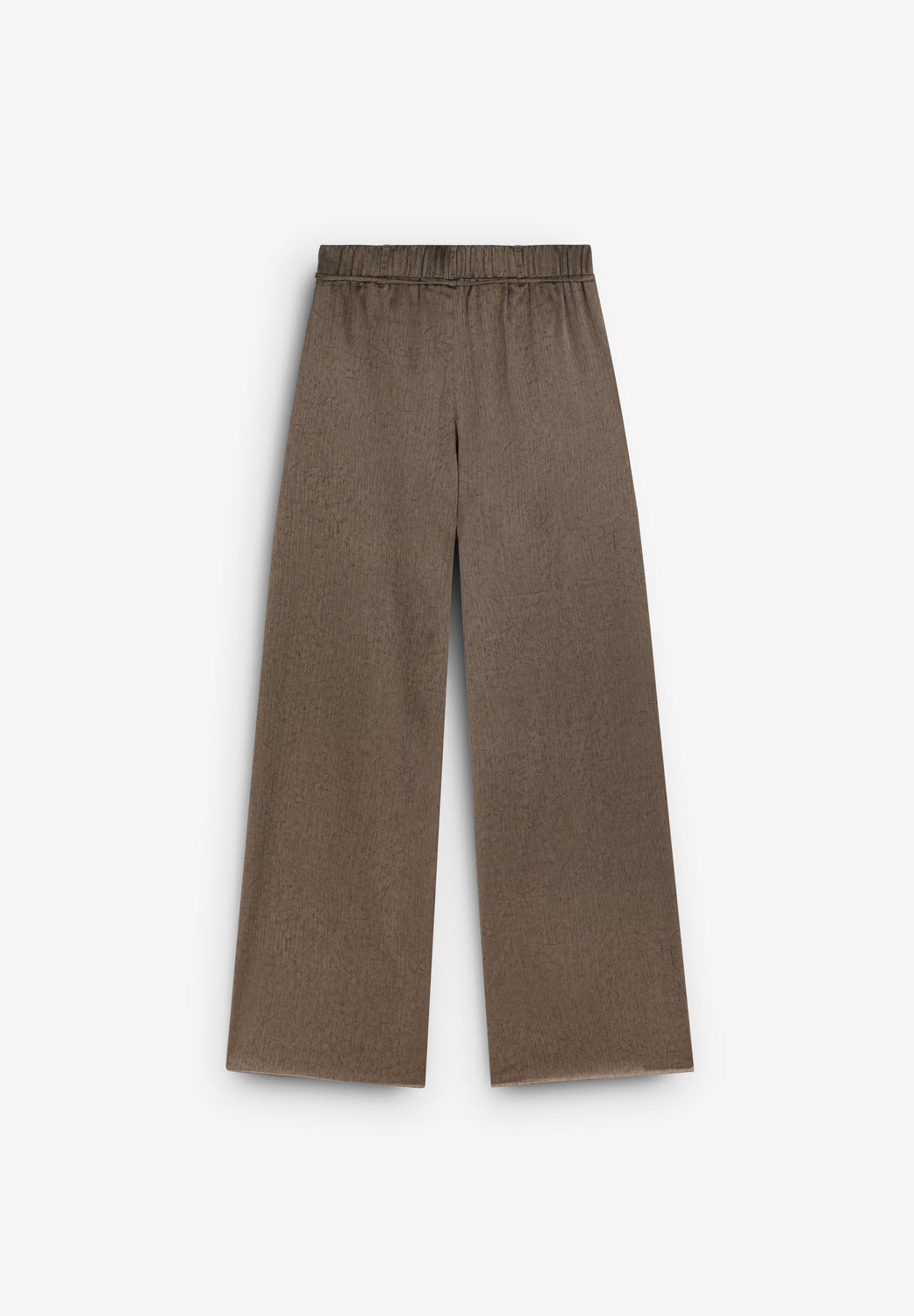 Pantalón fluido de tiro alto. Cinturilla ajustable. Detalle cordón.
