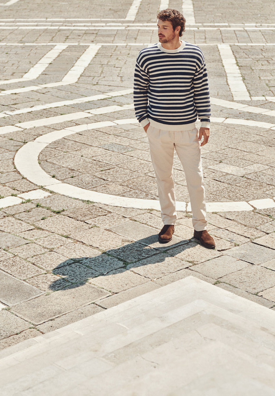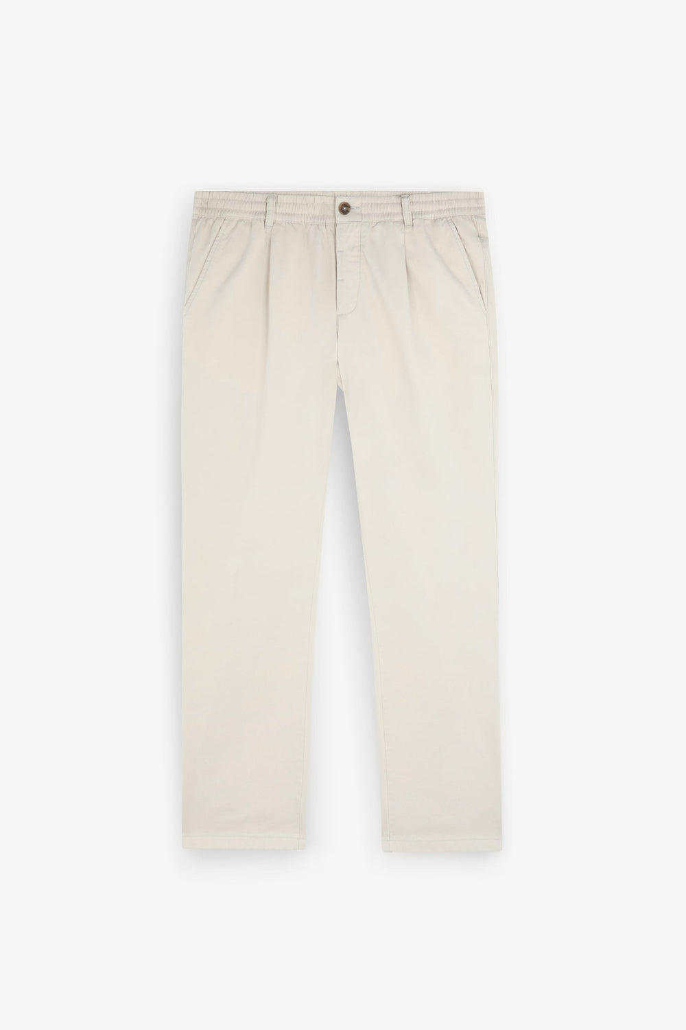 Pantalón confeccionado 100% algodón. Relaxed fit con pinzas, cierre con botón y bolsillos laterales y traseros.