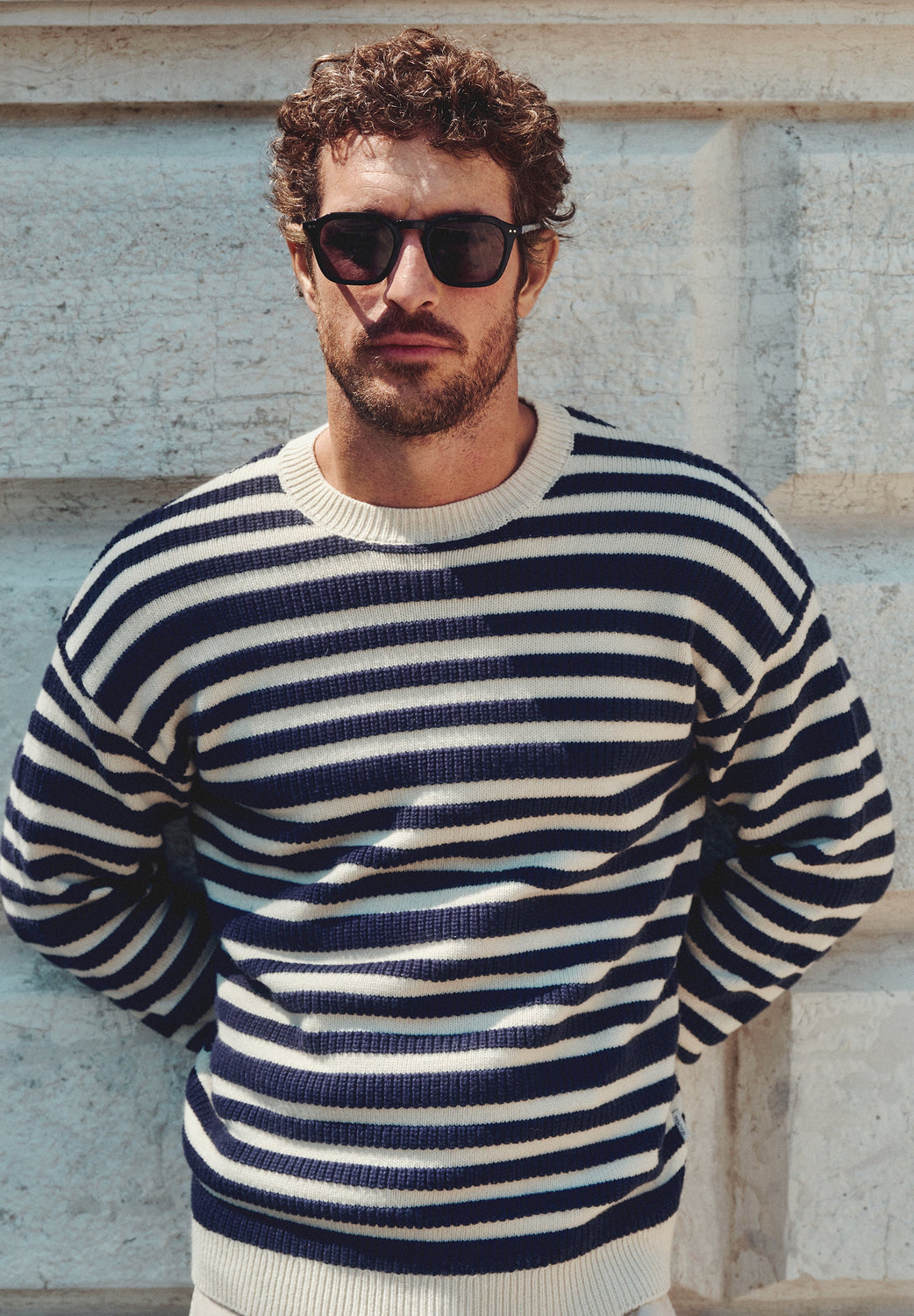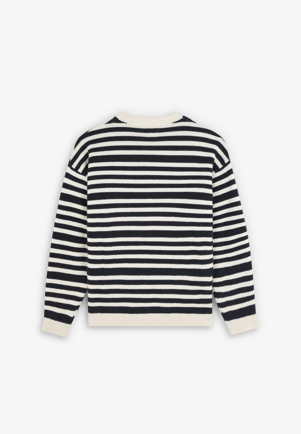Jersey rayas confeccionado en algodón y lana. Regular fit, cuello redondo y manga larga.
