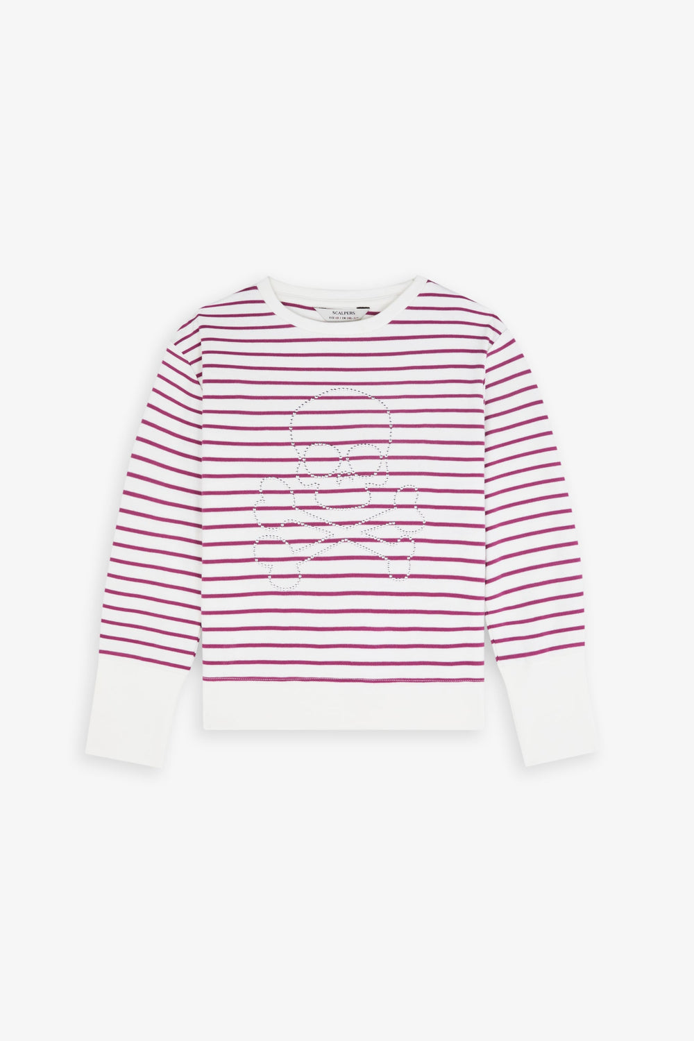 Sudadera de rayas con calavera frontal brillos. Confeccionada en 100% Algodón BCI. Corte Regular fit. Cuello redondo. Manga larga.