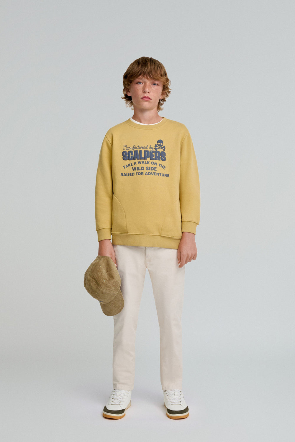 Sudadera confeccionada en mezcla de algodón BCI. Regular fit, cuello redondo y manga larga. Bolsillos laterales y logo en relieve.