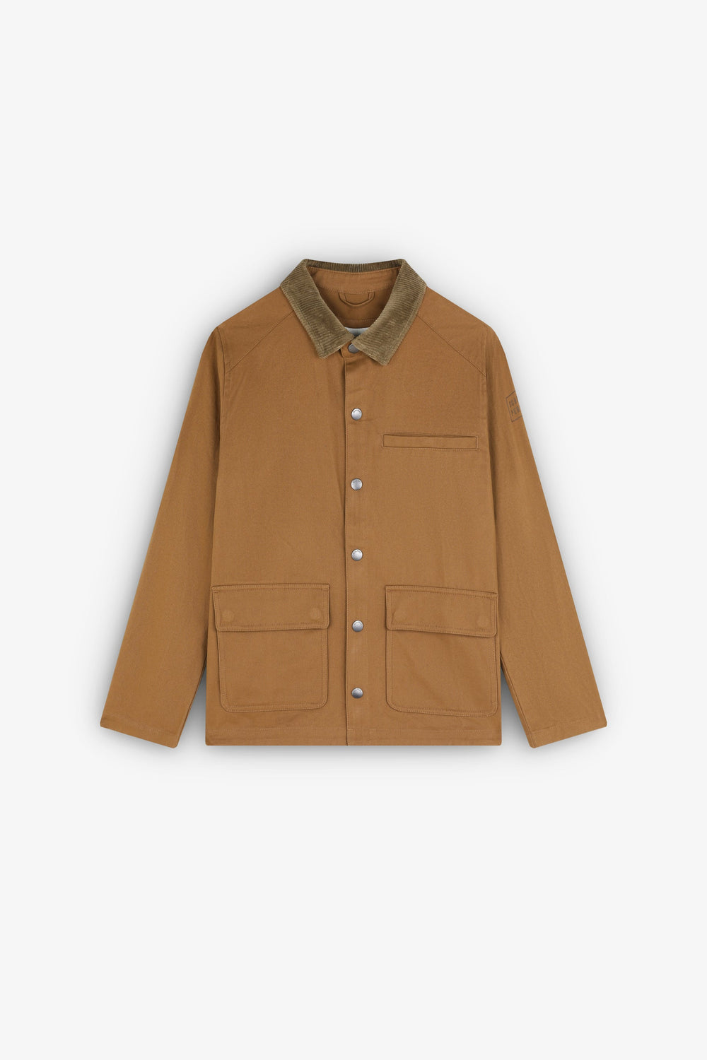 Chaqueta con bolsillos delanteros. Cuello clásico a contraste. Confeccionado en algodón 100%. Corte Regular Fit. Cierre con botones. Manga larga con cierre en puño con snaps.