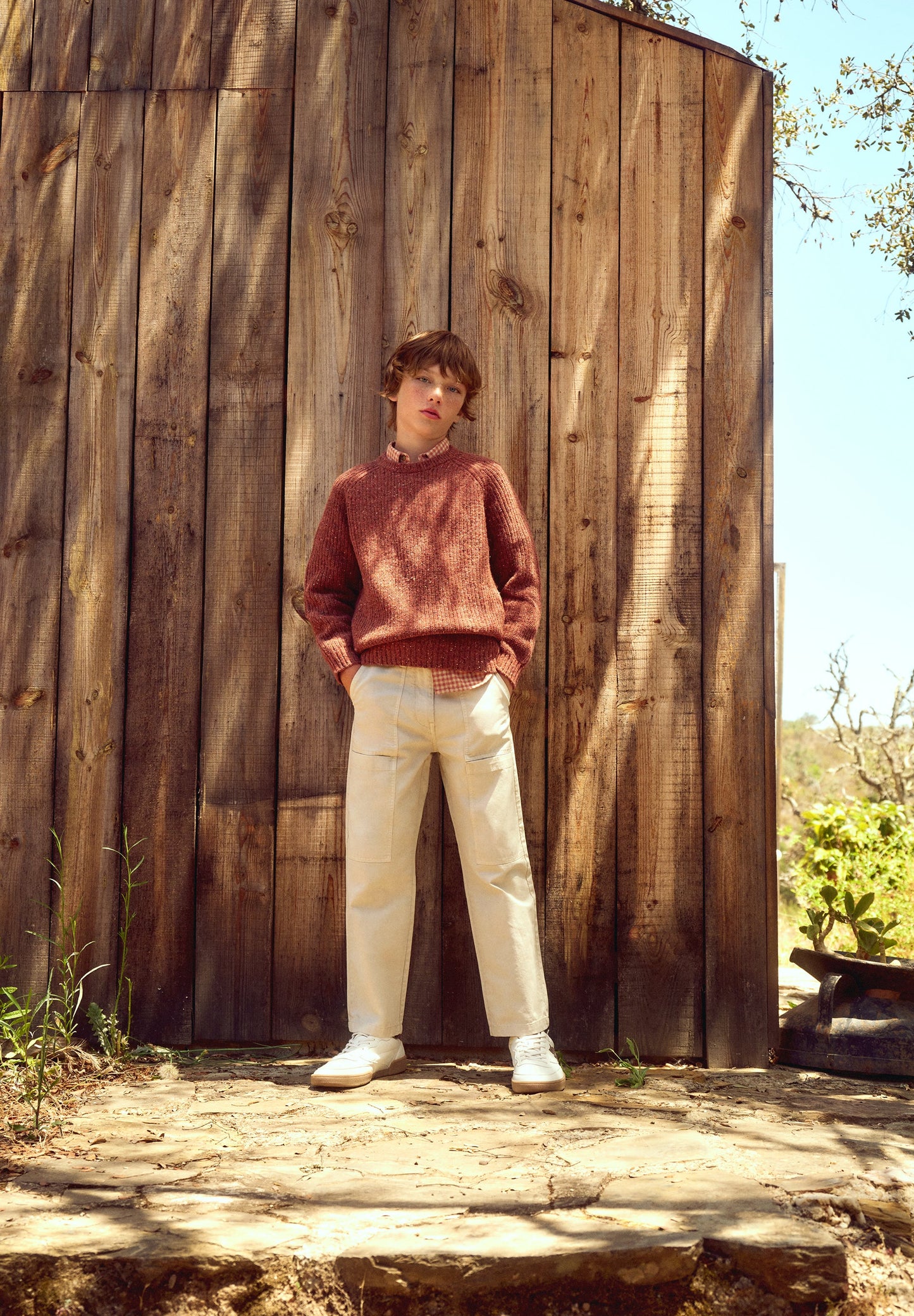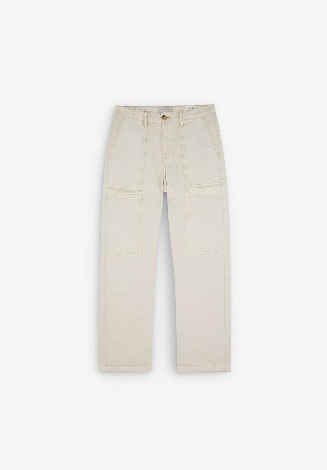 Pantalón confeccionado en 100% algodón BCI. Corte recto, cierre con cremallera y botón y trabillas en cintura. Bolsillos insertados y en pernera.