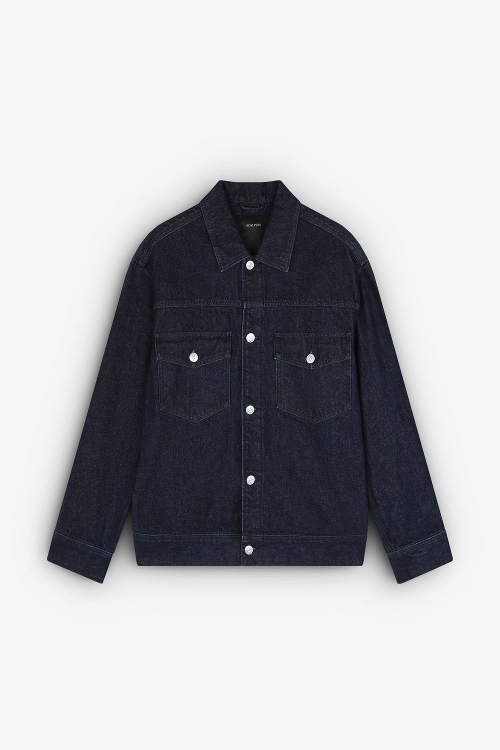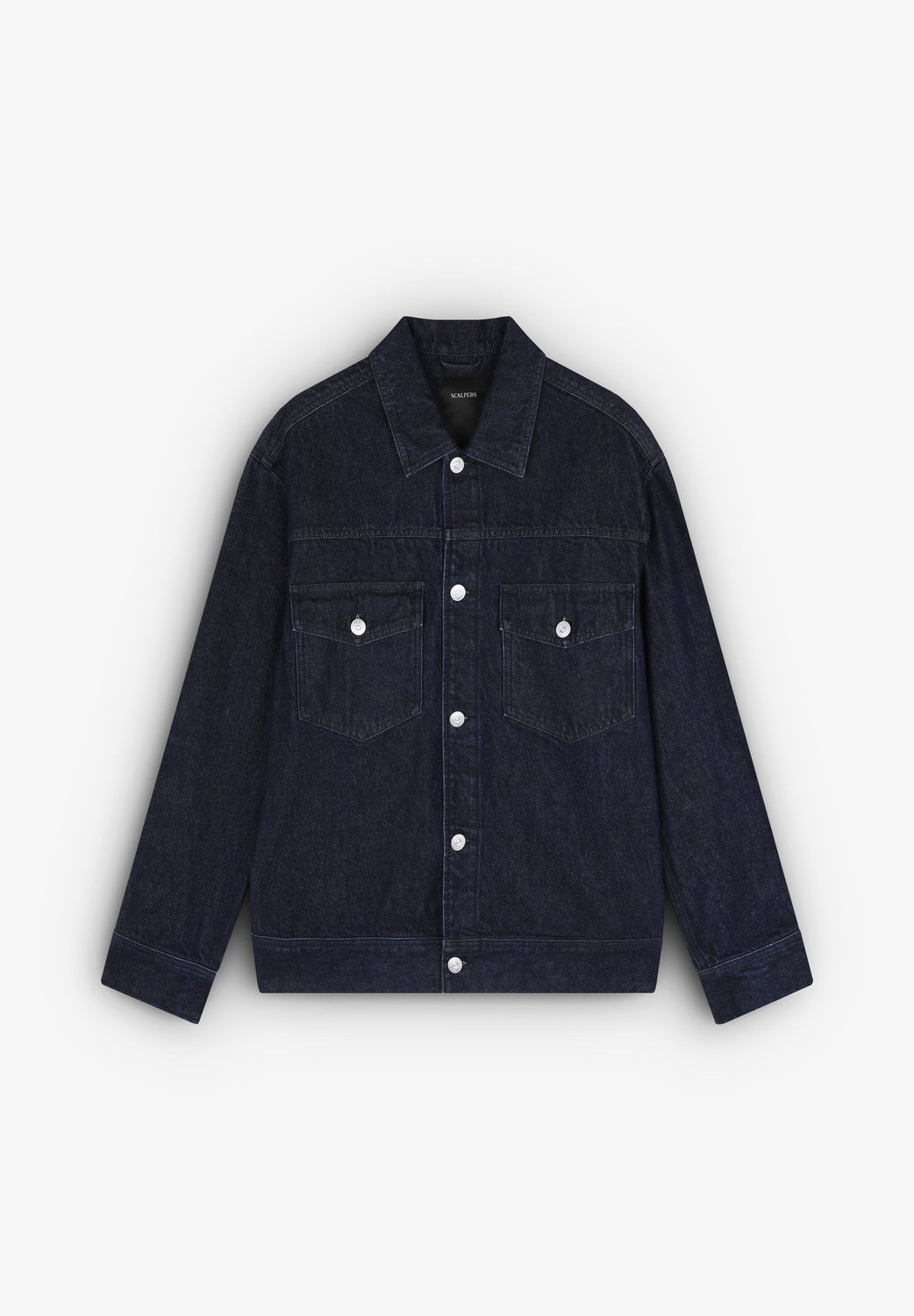 Chaqueta denim confeccionada en 100% algodón BCI. Regular fit, cuello clásico y cierre con botones. Manga larga terminada en puño con botón. Bolsillos con tapeta y botón.