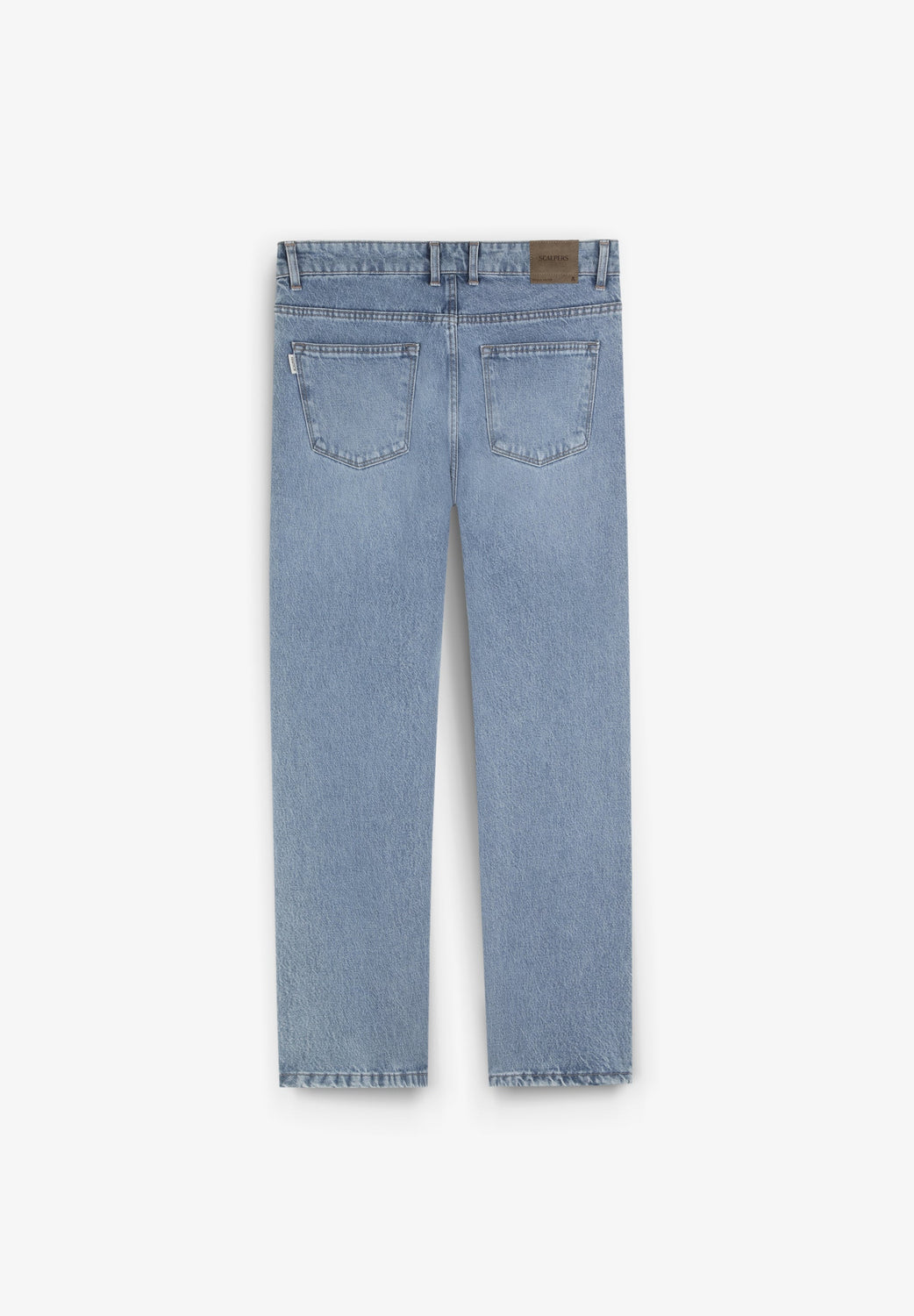 Jeans confeccionados en algodón BCI. Regular fit, cierre con botones y trabillas en cintura. Bolsillos delanteros y traseros.