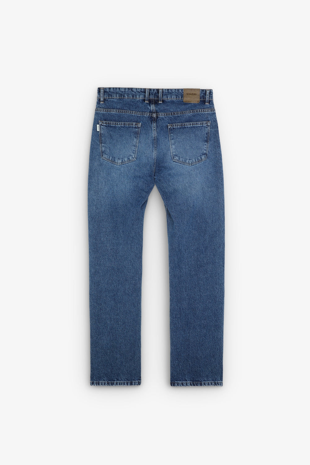 Jeans confeccionados en algodón BCI. Regular fit, cierre con botones y trabillas en cintura. Bolsillos delanteros y traseros.