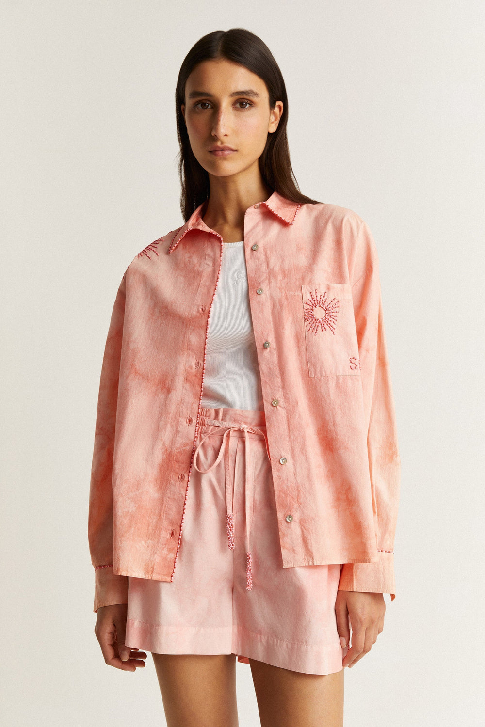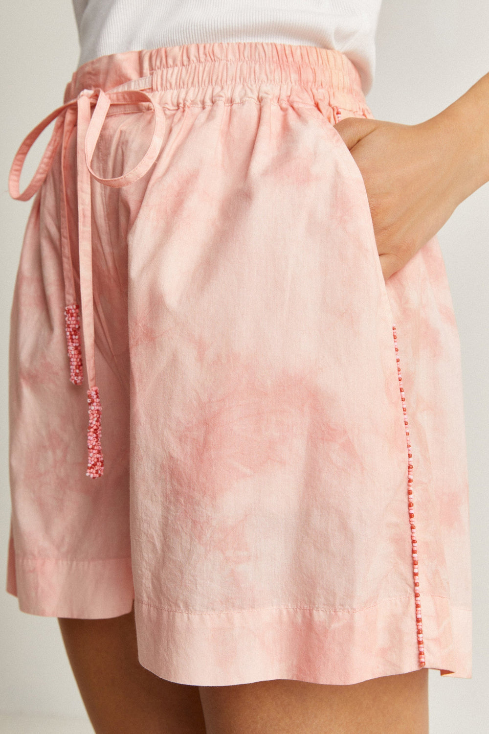 Shorts tie dye con detalle de abalorios.