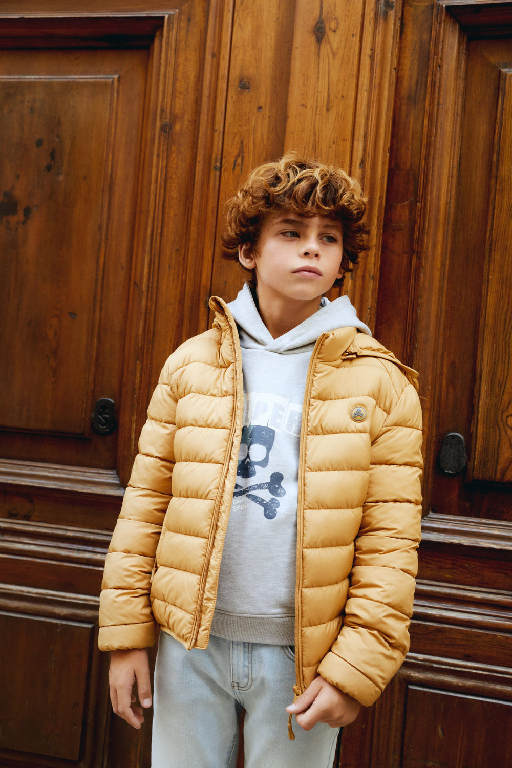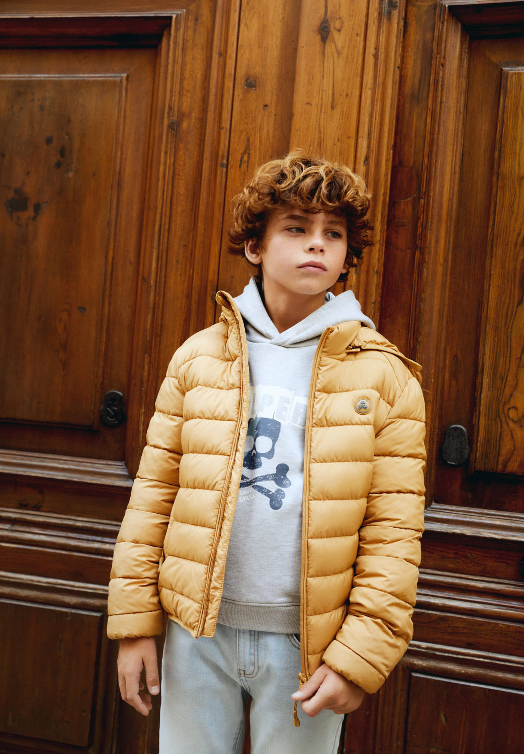 Chaqueta acolchada con capucha y detalle calavera engomada en pecho