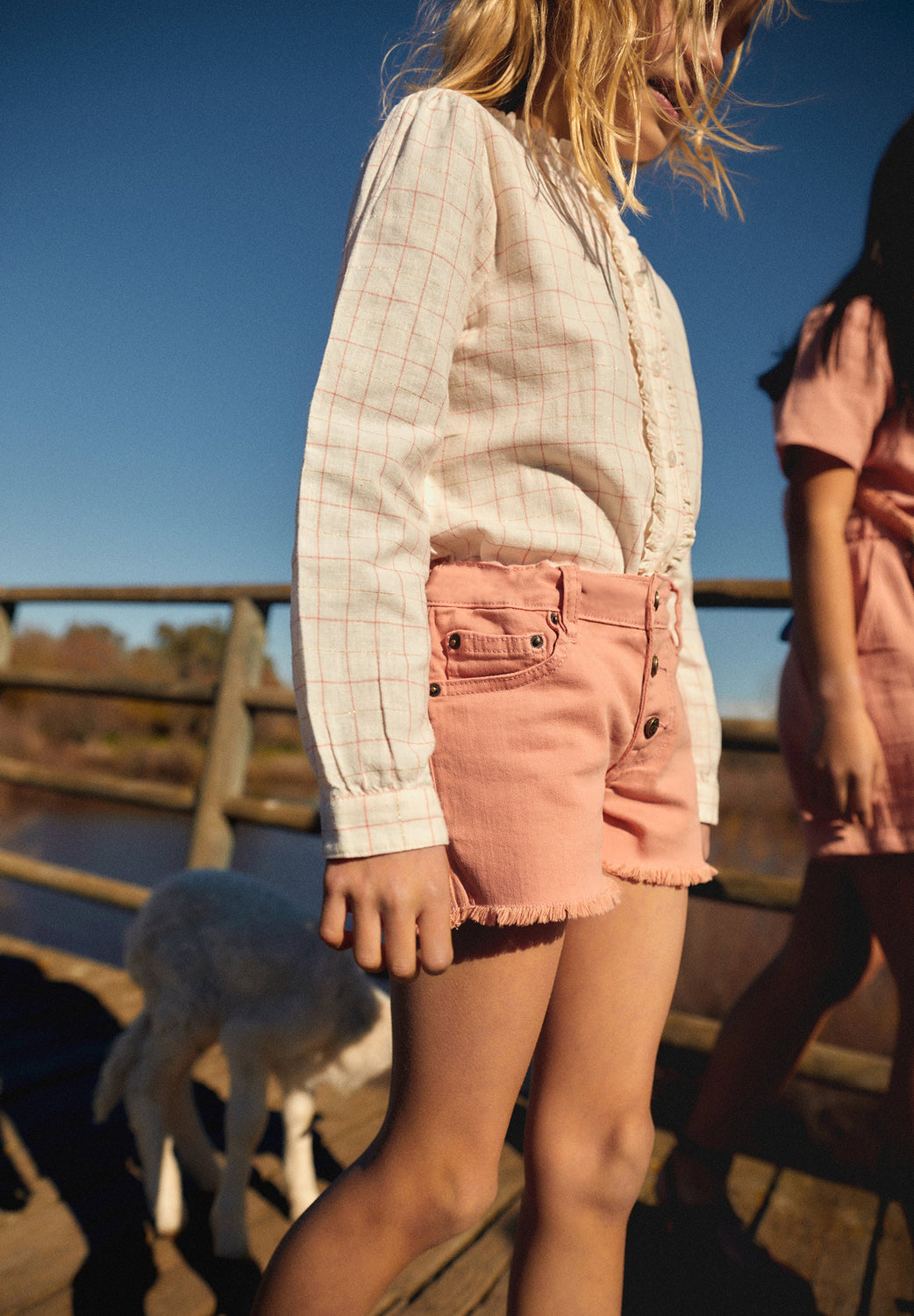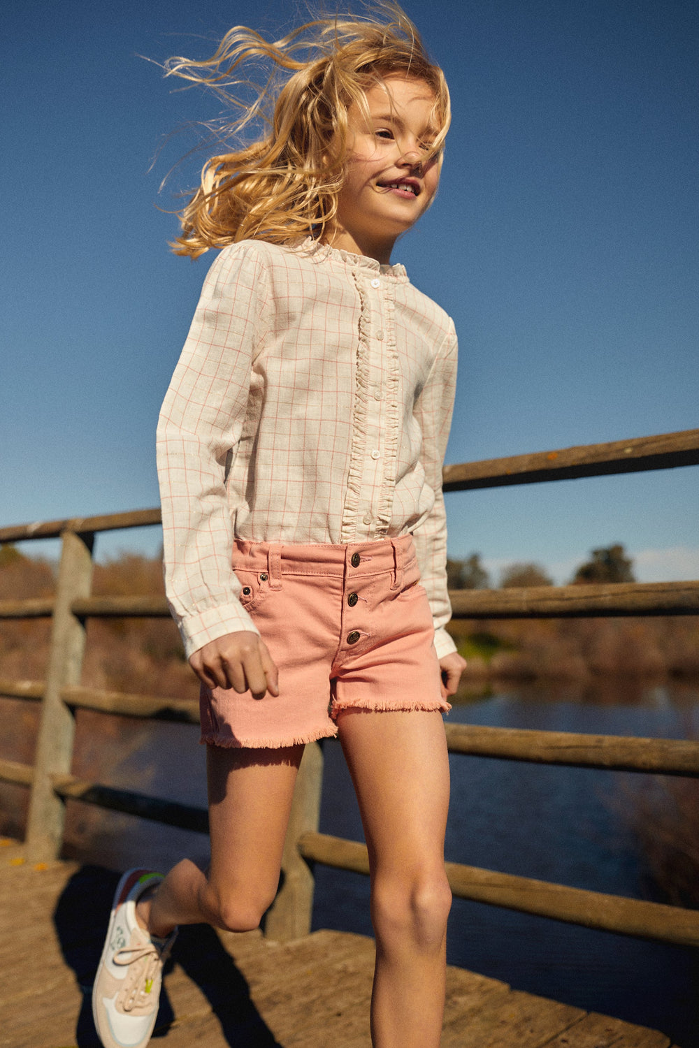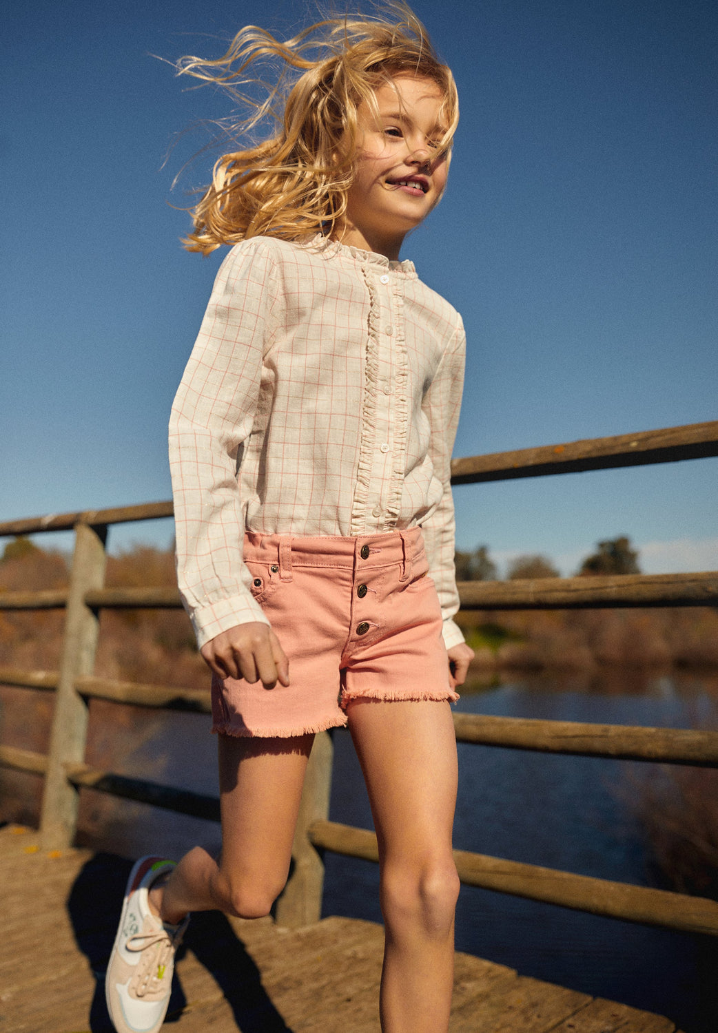 - Confeccionada en mezcla de algodón ligeramente elástica