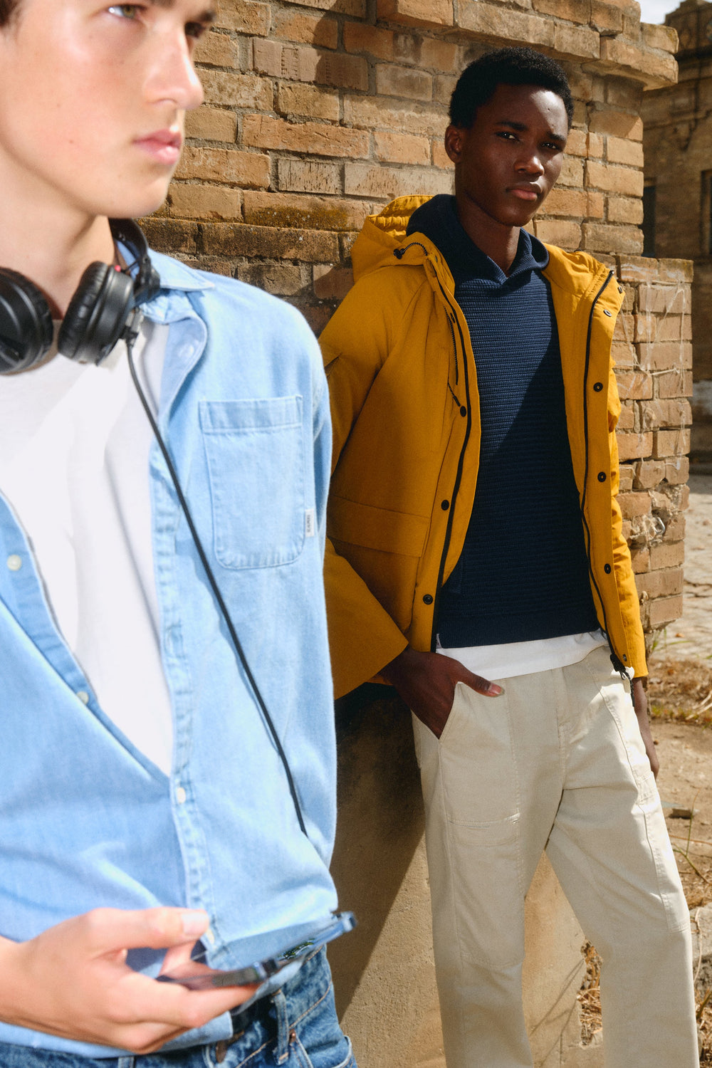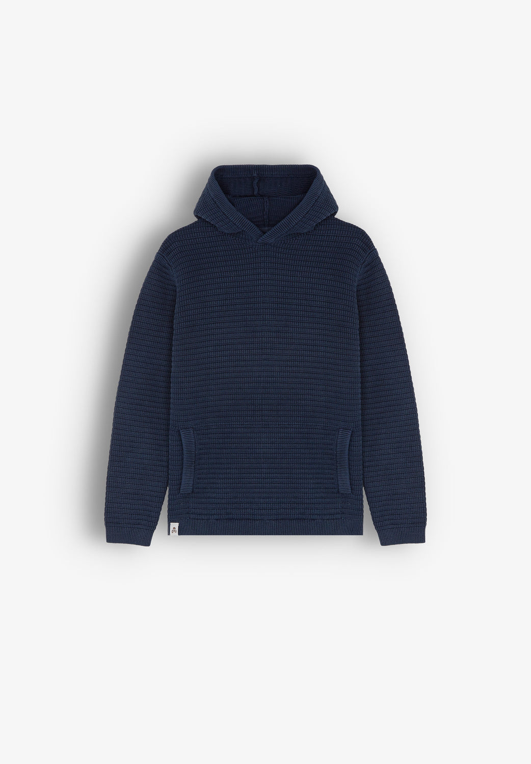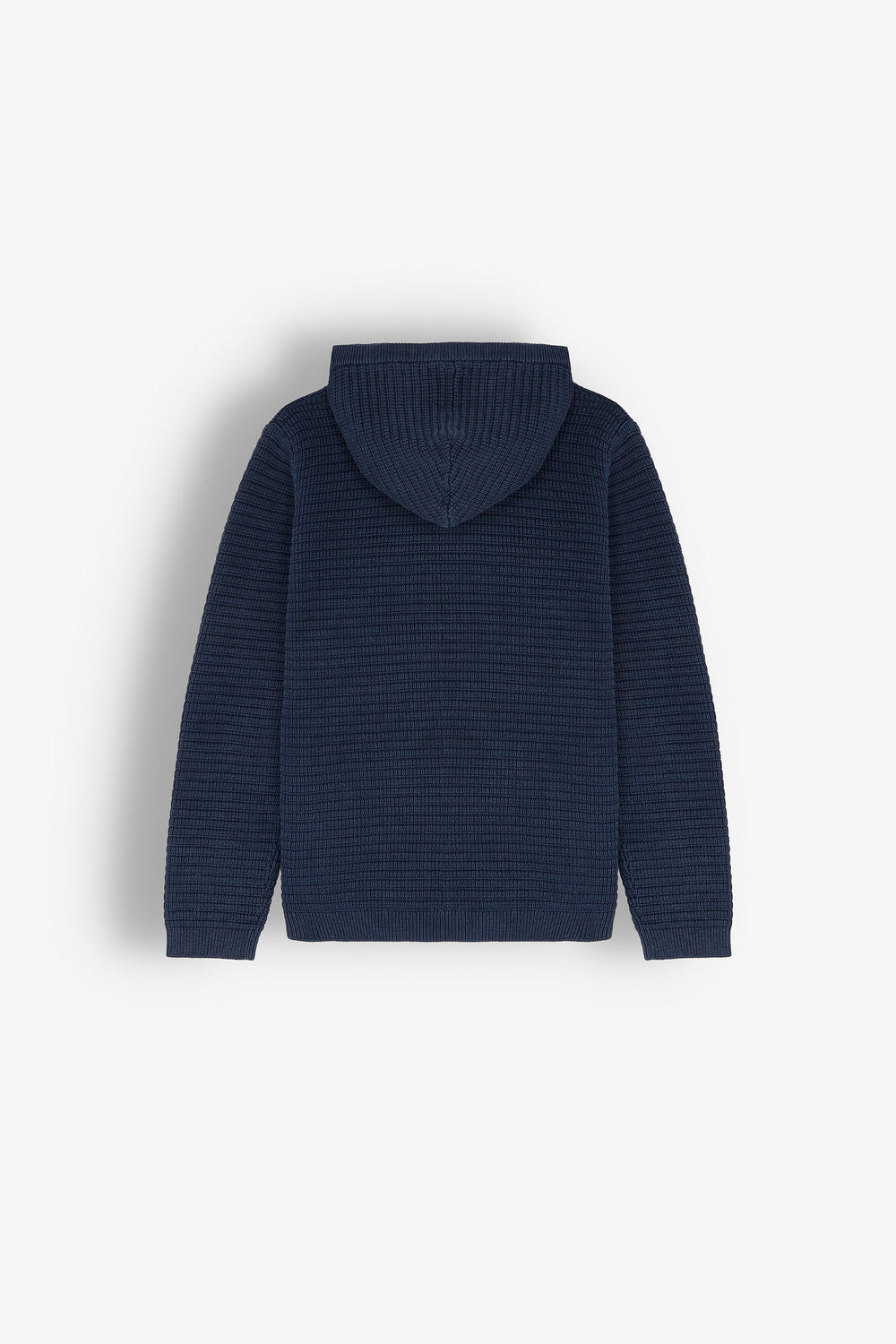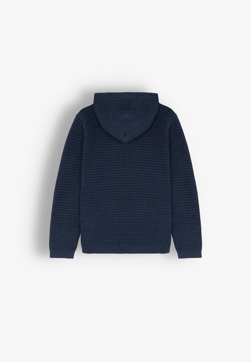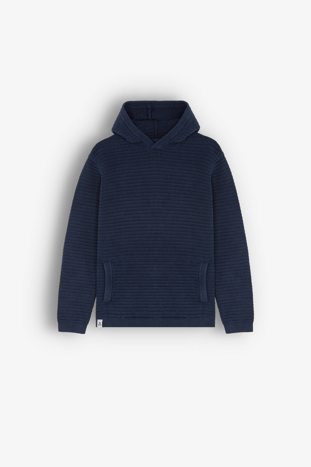 Jersey de punto con estructura confeccionado en 100% algodón BCI. Regular fit, cuello con capucha y manga larga.