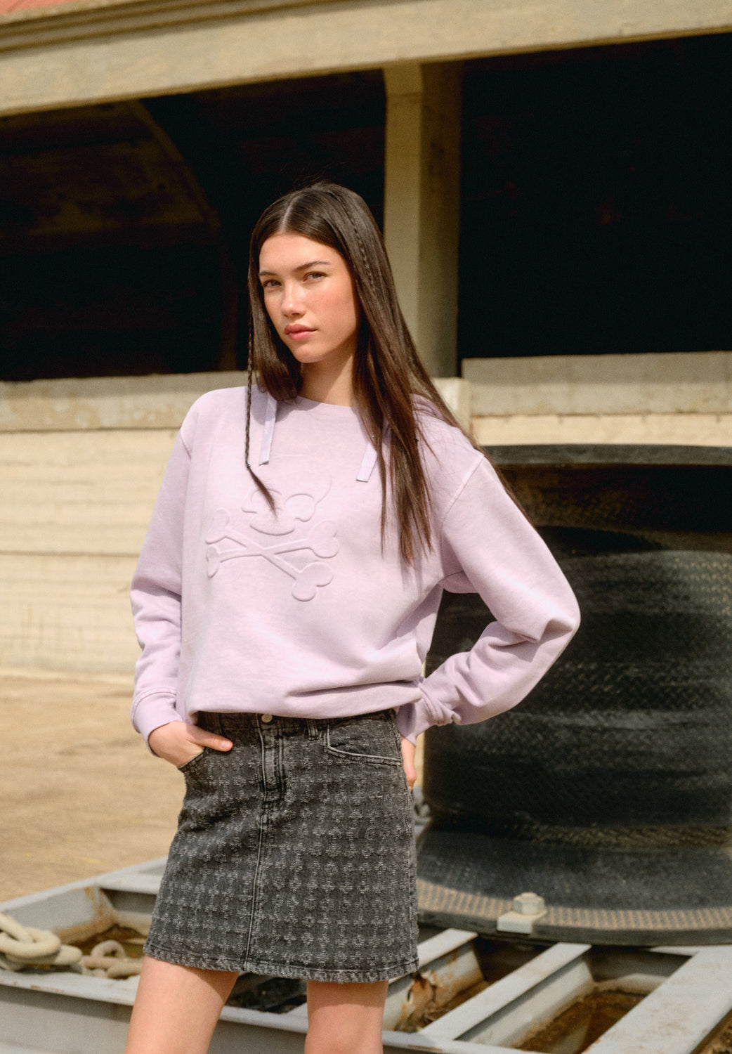 Sudadera lisa con calavera frontal. Confeccionada en 100% Algodón BCI. Corte Regular fit. Cuello con capucha.