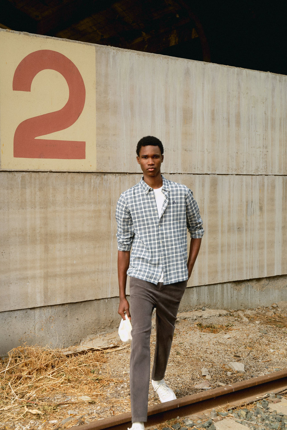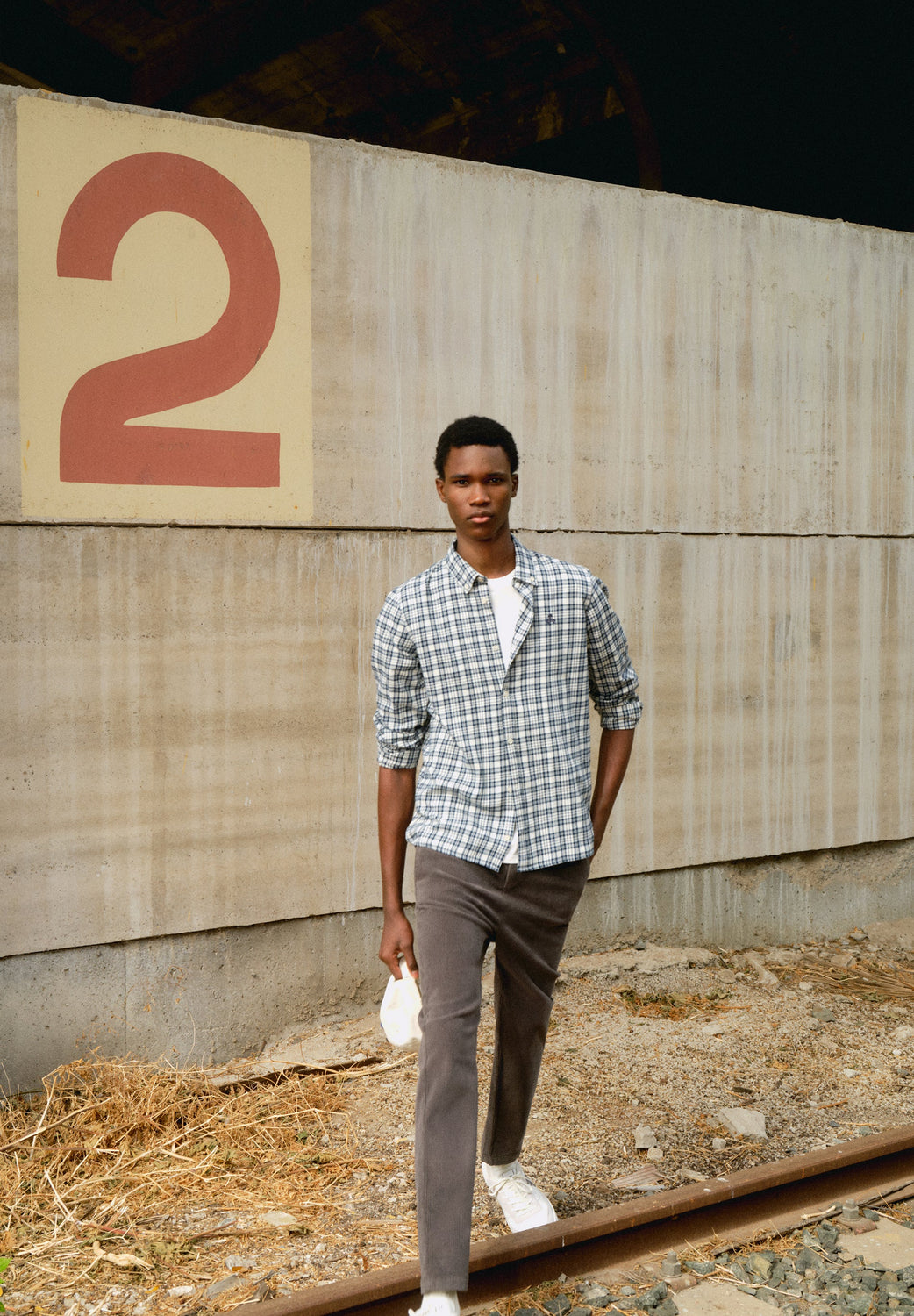 Camisa de cuadros confeccionada en mezcla de algodón BCI y lino. Regular fit, cuello clásico y cierre con botones. Manga larga terminada en puño y calavera bordada con botones.