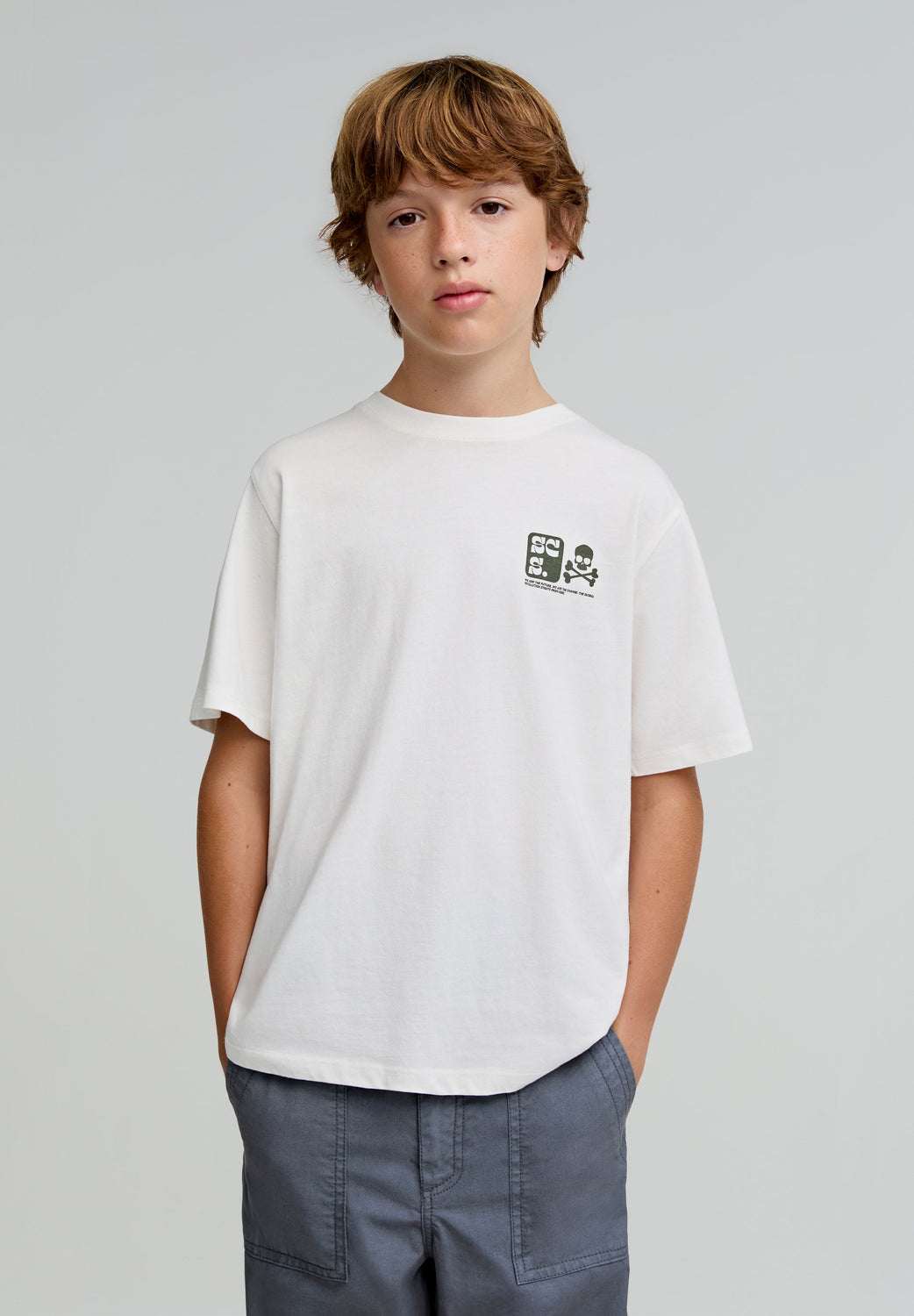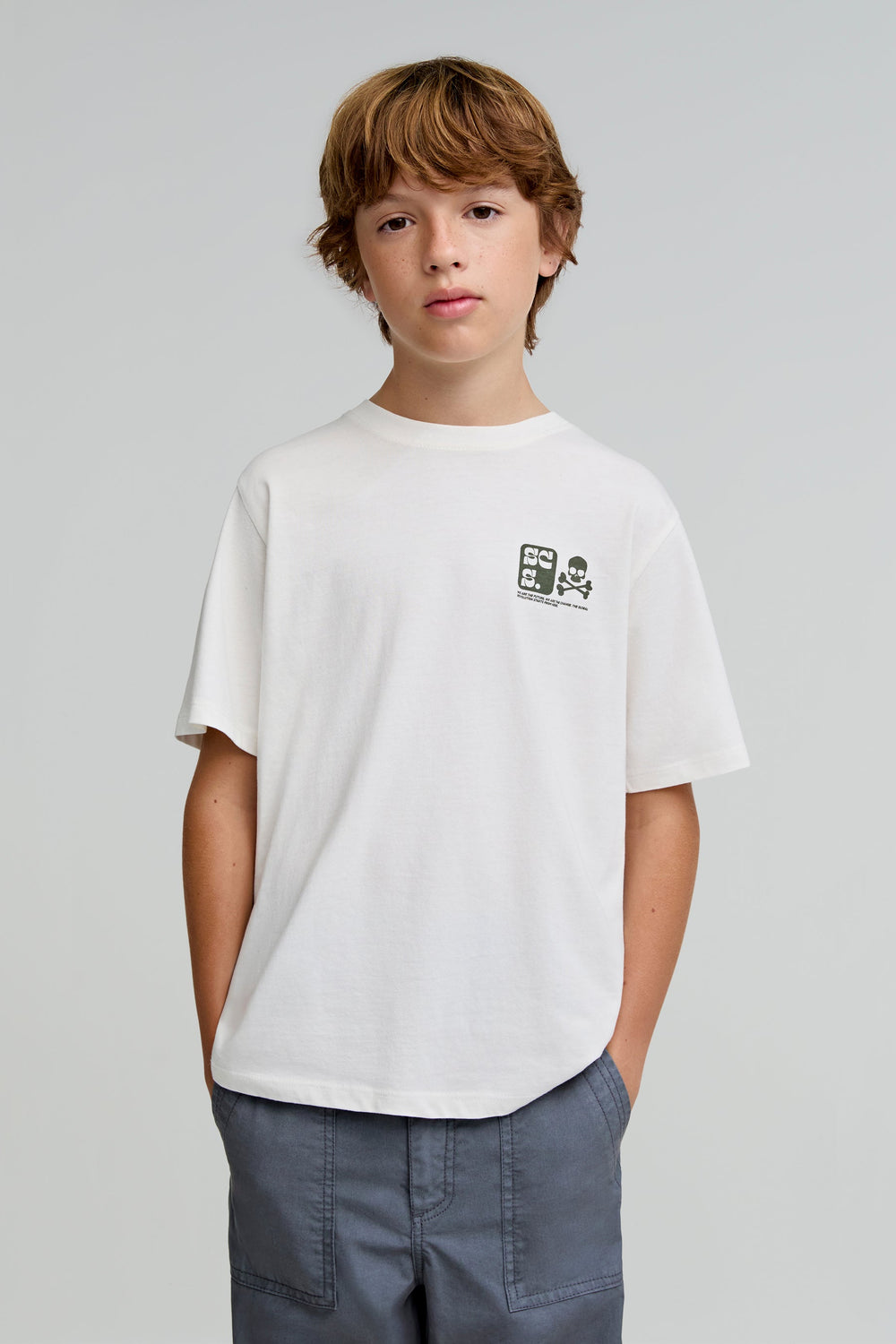 Camiseta confeccionada en 100% algodón BCI. Regular fit, cuello redondo y manga corta. Print en pecho y trasero a contraste.