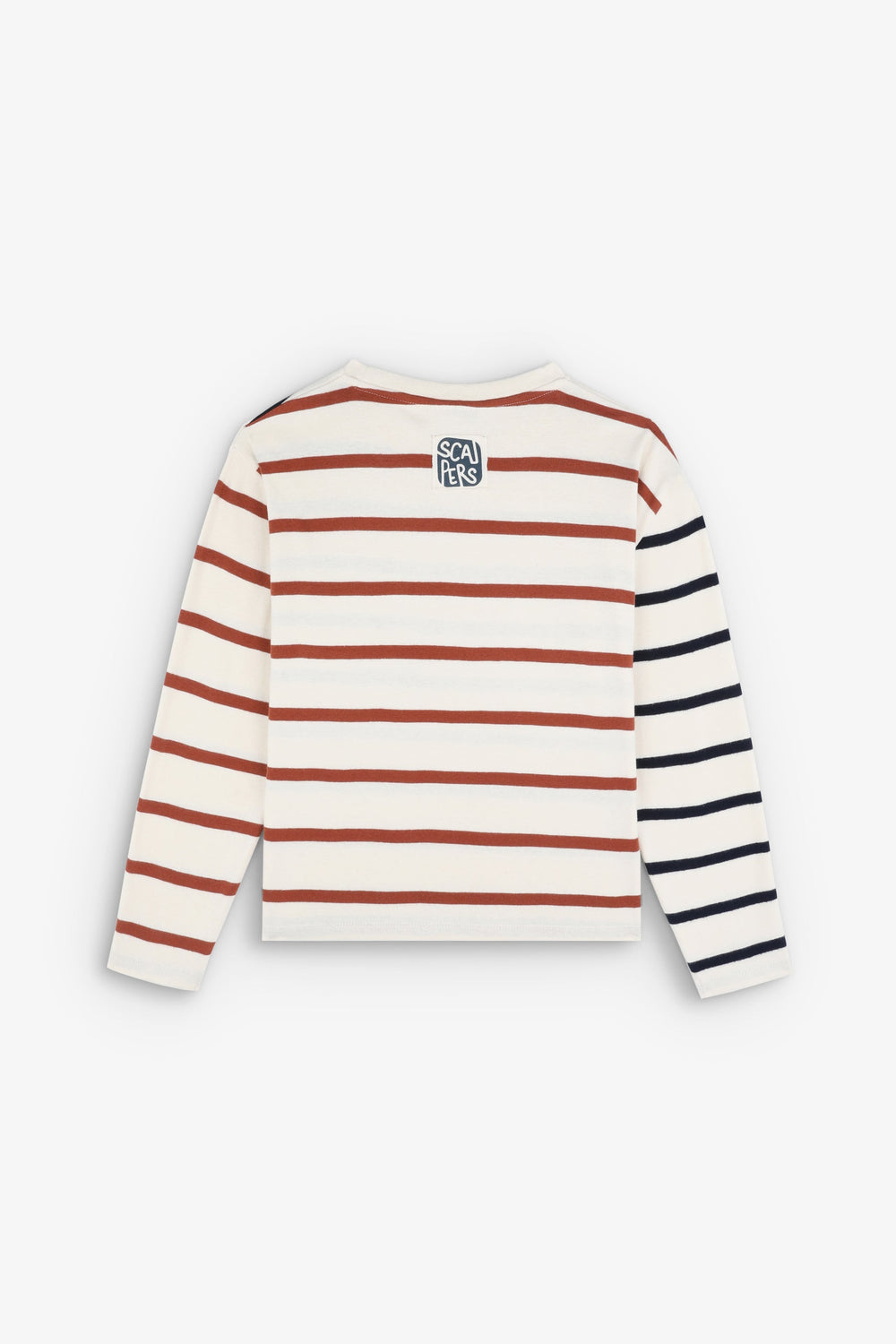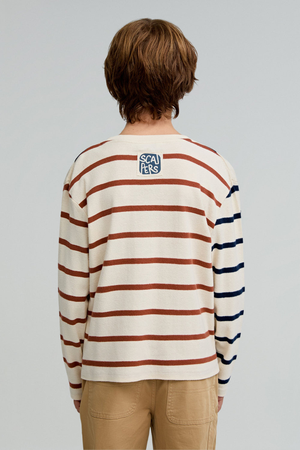 Camiseta de rayas confeccionada en 100% algodón BCI. Regular fit, cuello redondo y manga larga.