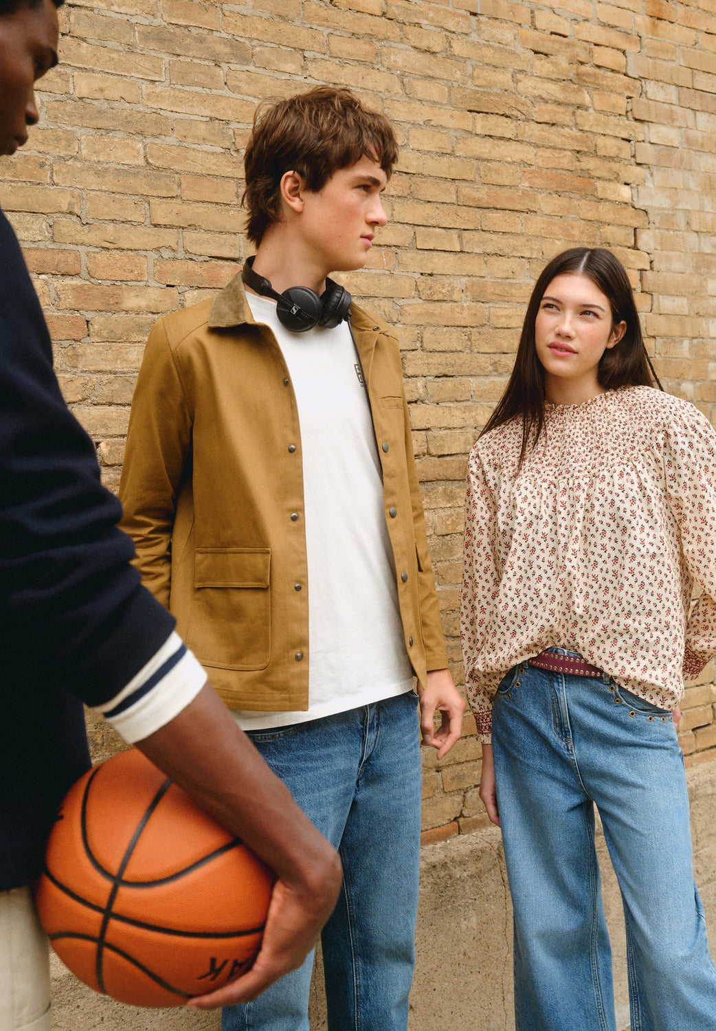 Jeans confeccionados en 100% algodón BCI. Corte culotte con tiro alto, cierre con botón y cremallera y bolsillos laterales y traseros.