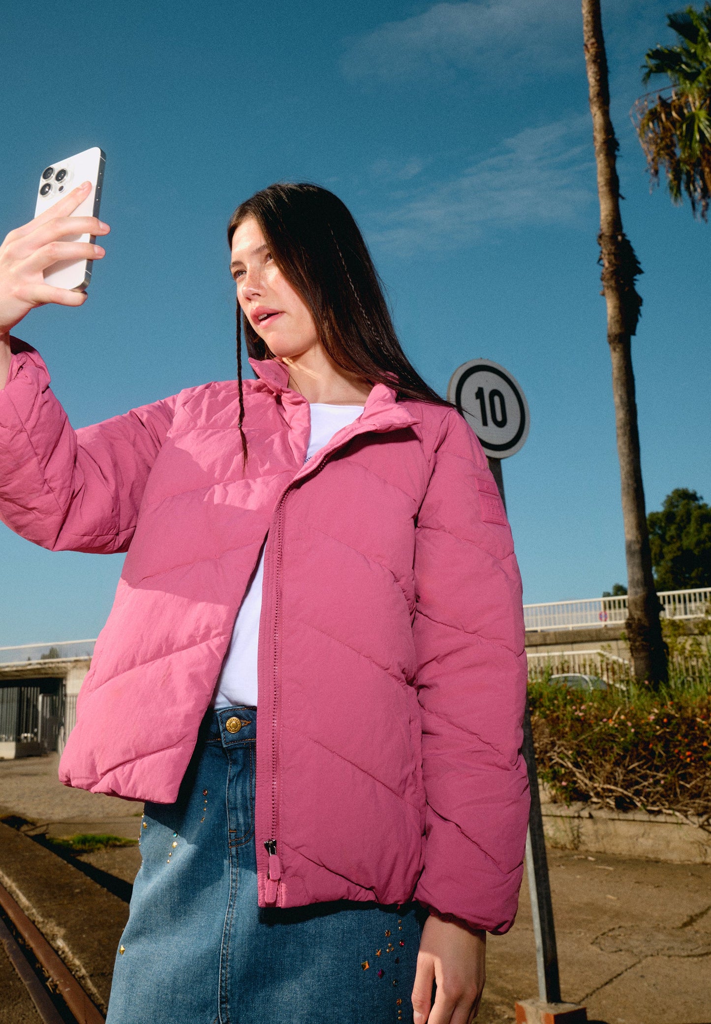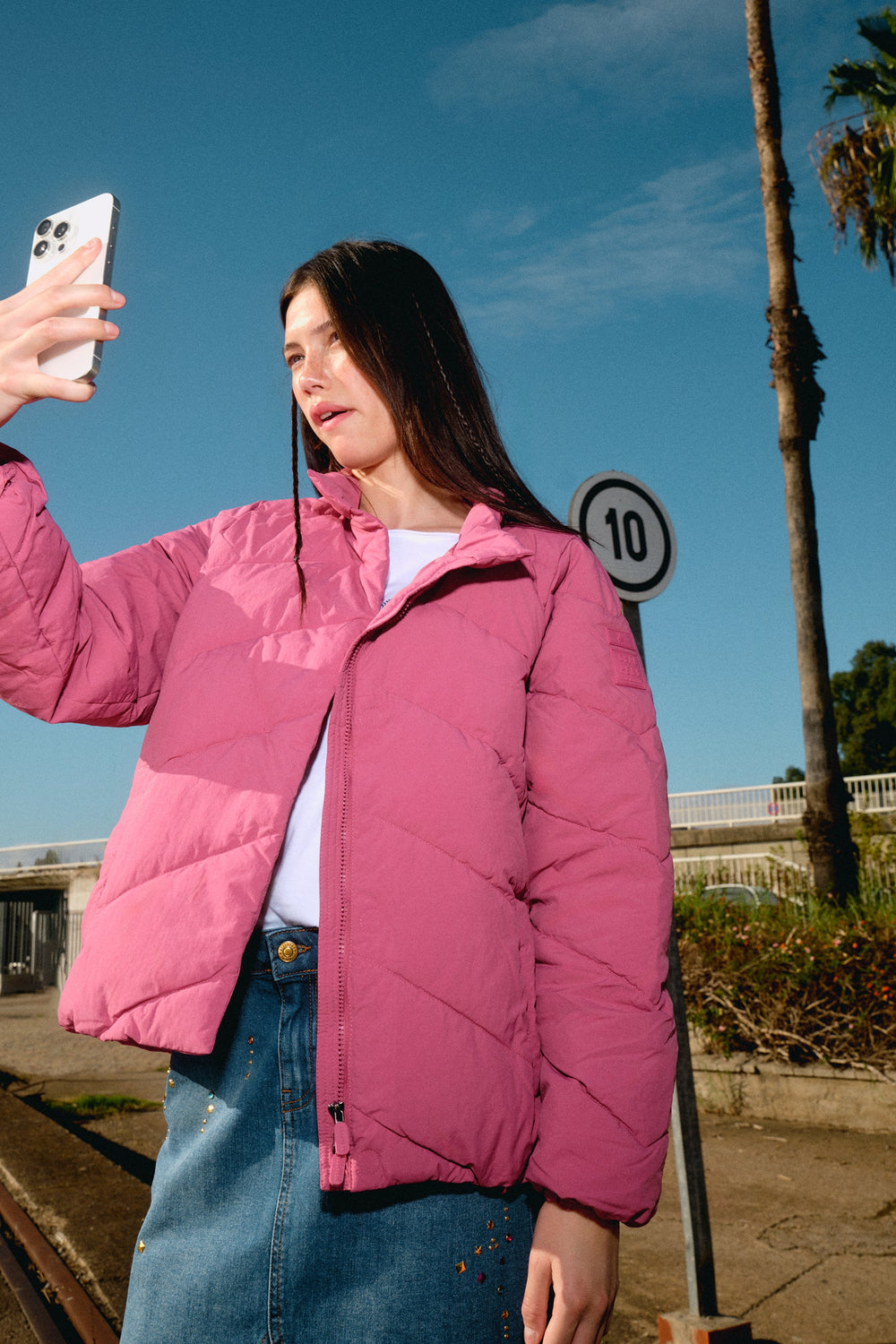 Falda mini denim confeccionada en algodón ligeramente elástico. Regular fit, cierre con botón y cremallera y bolsillos laterales y traseros. Trabillas en cintura.
